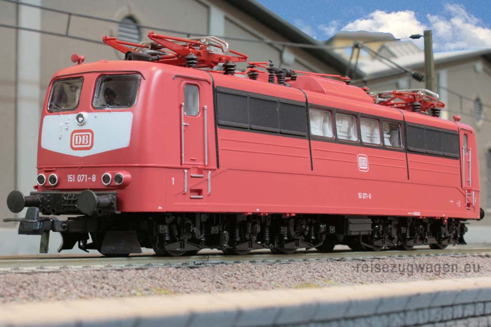 6-achsige Güterzuglokomotive der Baureihe 151 in orientrot. Alter DB-Keks, Ep. Va