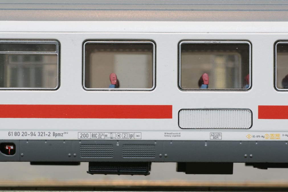 2. Klasse Großraumwagen der Baureihe Bpmbz 291.5, ICE-weiss ohne FIS, Ep V (Zuglauf EC 8 “Tiziano” Milano C-Hamburg Altona)