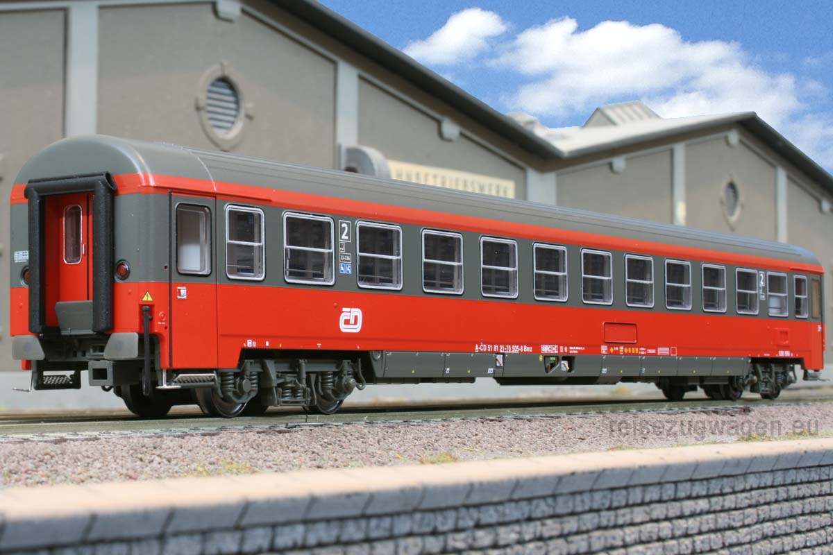 2-teiliges Wagenset Bmz der ÖBB als CD-Leihfarzeug Verkehrsrot/umbragraue Lackierung. Ep VI