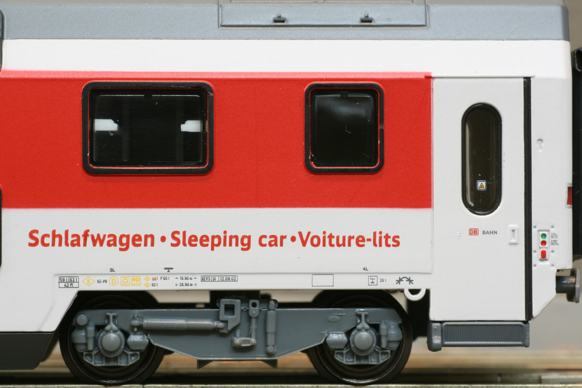 Doppelstock-Schlafwagen WLBm 171.0 der CNL in aktueller verkehrsroter Farbgebung. Ausführung mit Schriftzug “CityNightLine” (3. Auflage)