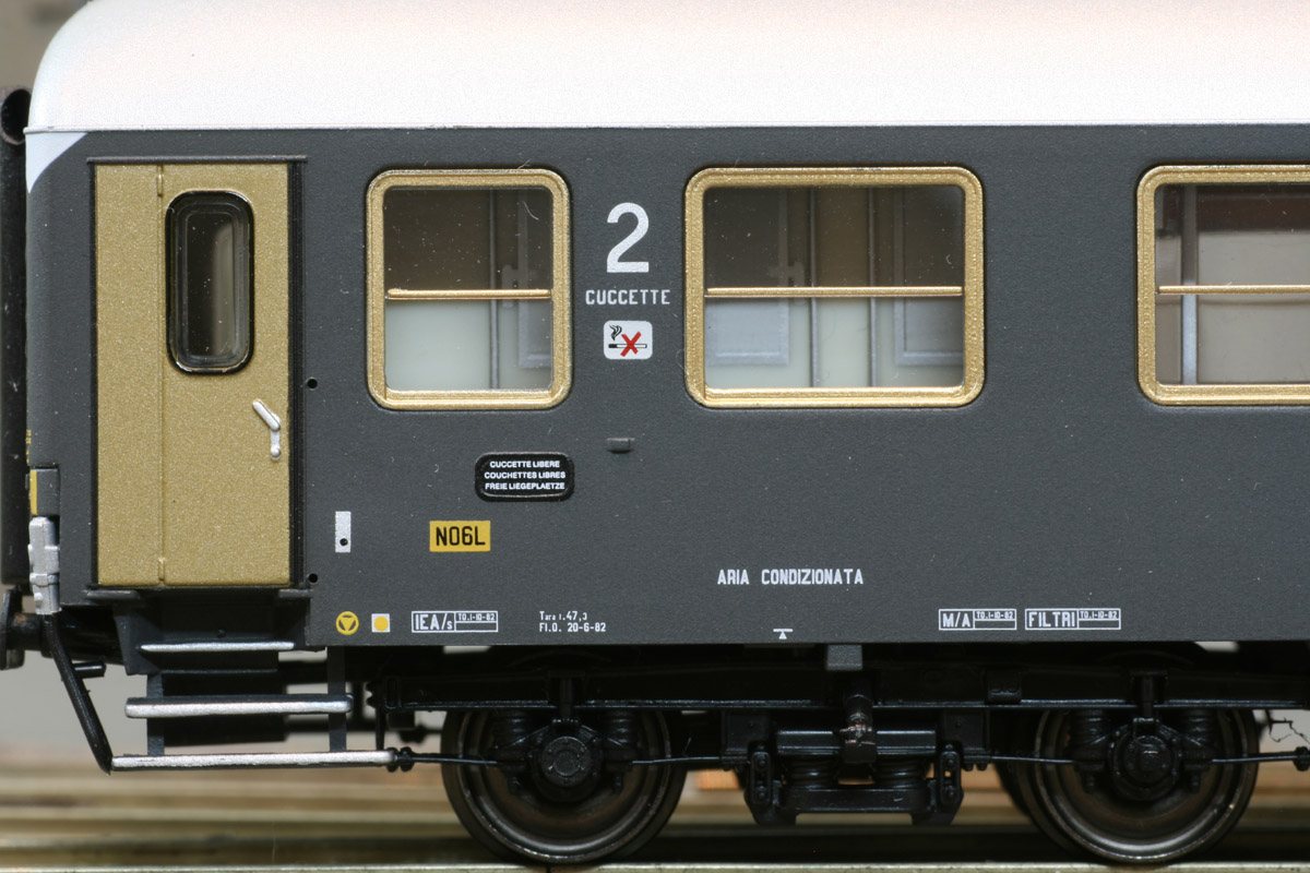Liegewagen Bcz (Bauart UIC-X 1970) der FS, MD-Drehgestelle, Tagesstellung der Inneneinrichtung, Ep. IV