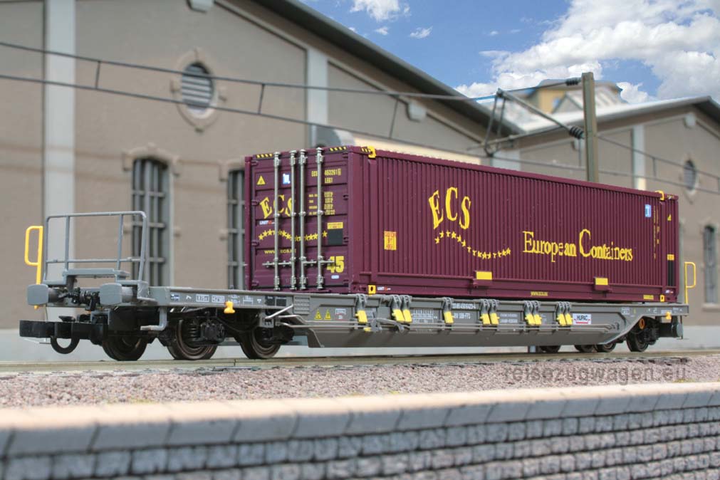 4-achsiger Tragwagen der “Hupacâ€, beladen mit 45′ Container “ECS”. (Abb zeigt ähnl. Modell) Ep. VI