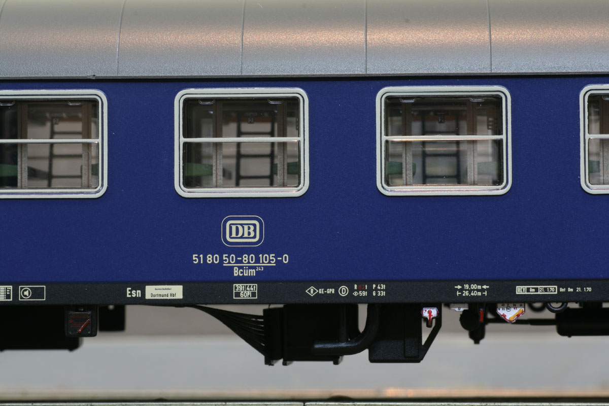 Liegewagen Bcüm 243, Ep. IVa, Einzelwagen aus Set (Lieferung in stabiler Klarsicht-Faltschachtel).