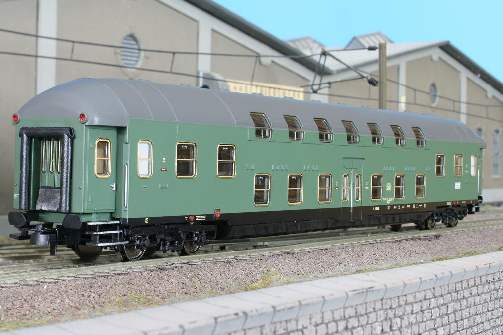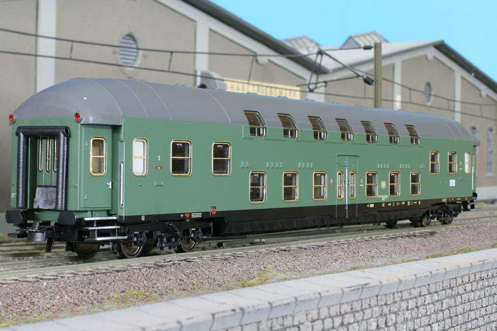 3-teiliges Doppelstockwagen-Set bestehend aus je einem DBym 471, 472 und 473. Version in chromdioxidgrün, Ep. IV