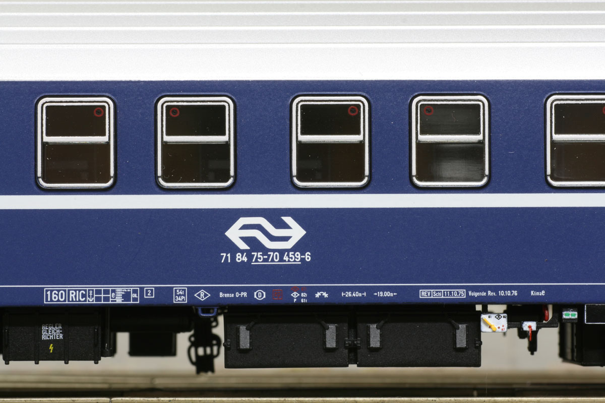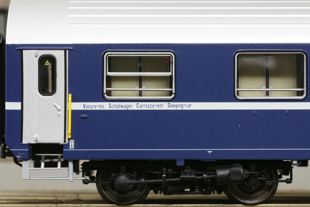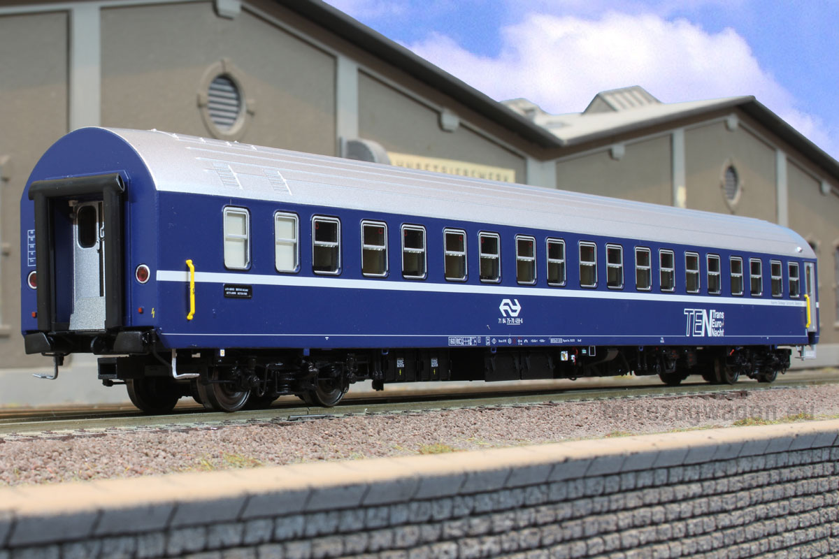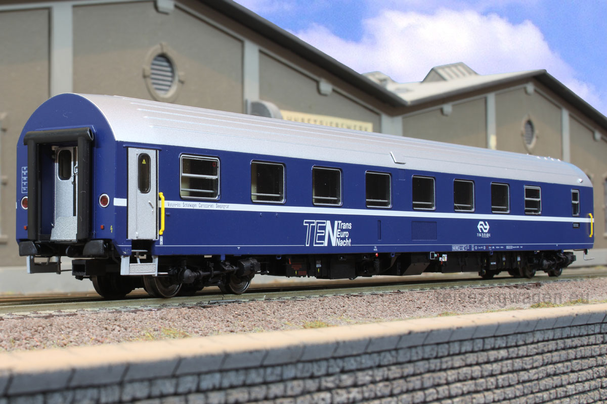 Schlafwagen Typ T2S der NS, MD 37 Drehgestelle, silbernes Dach, Ep. IV