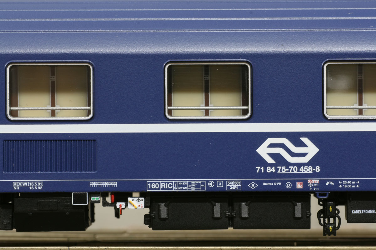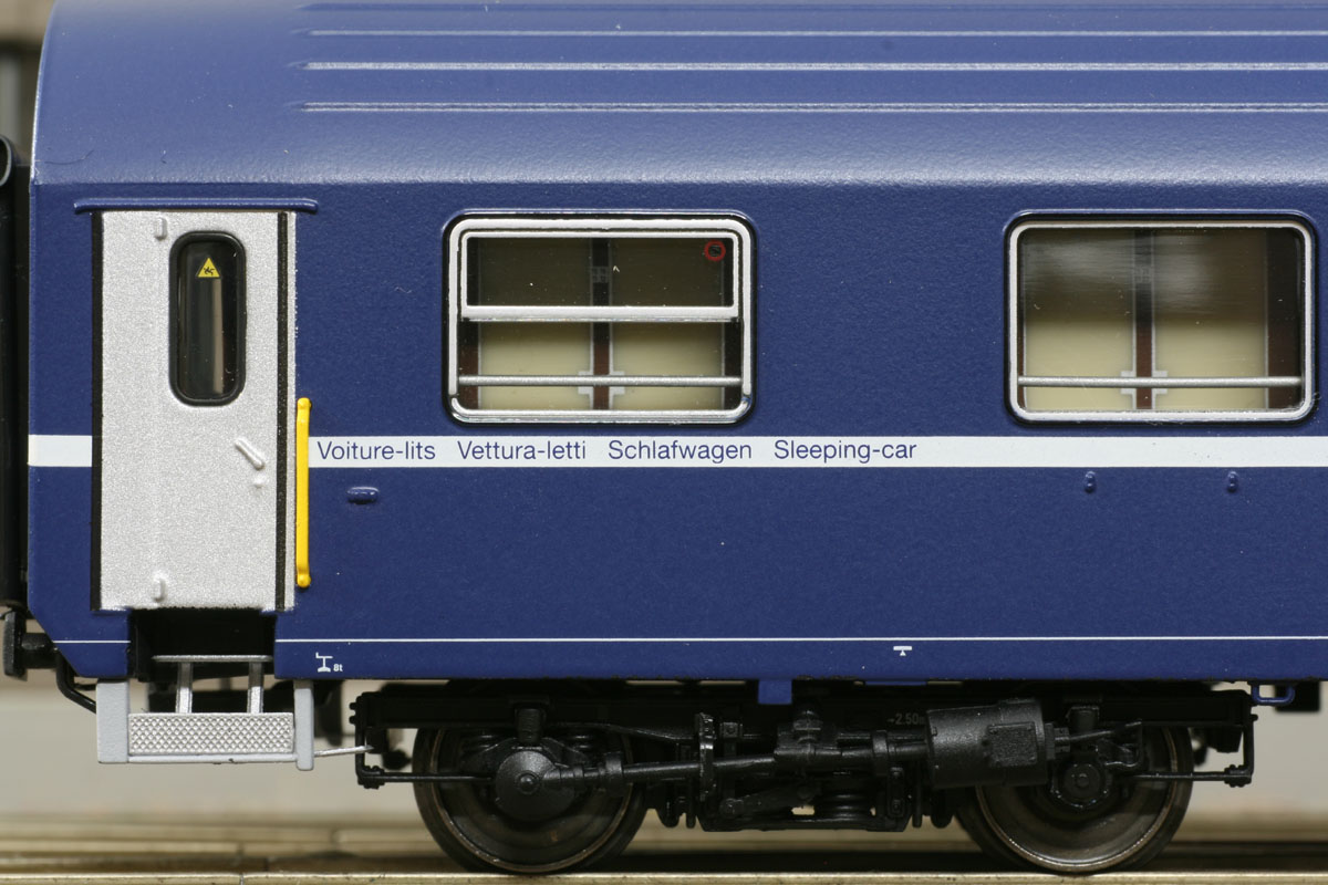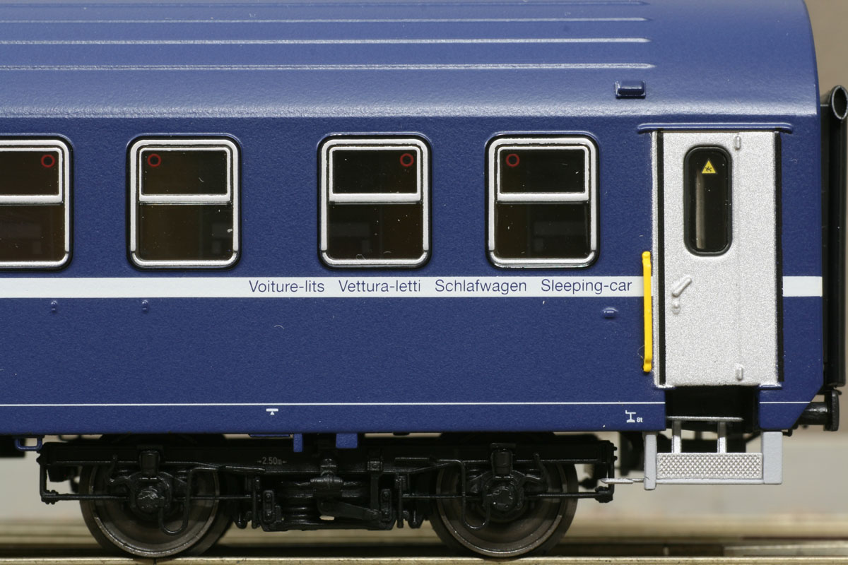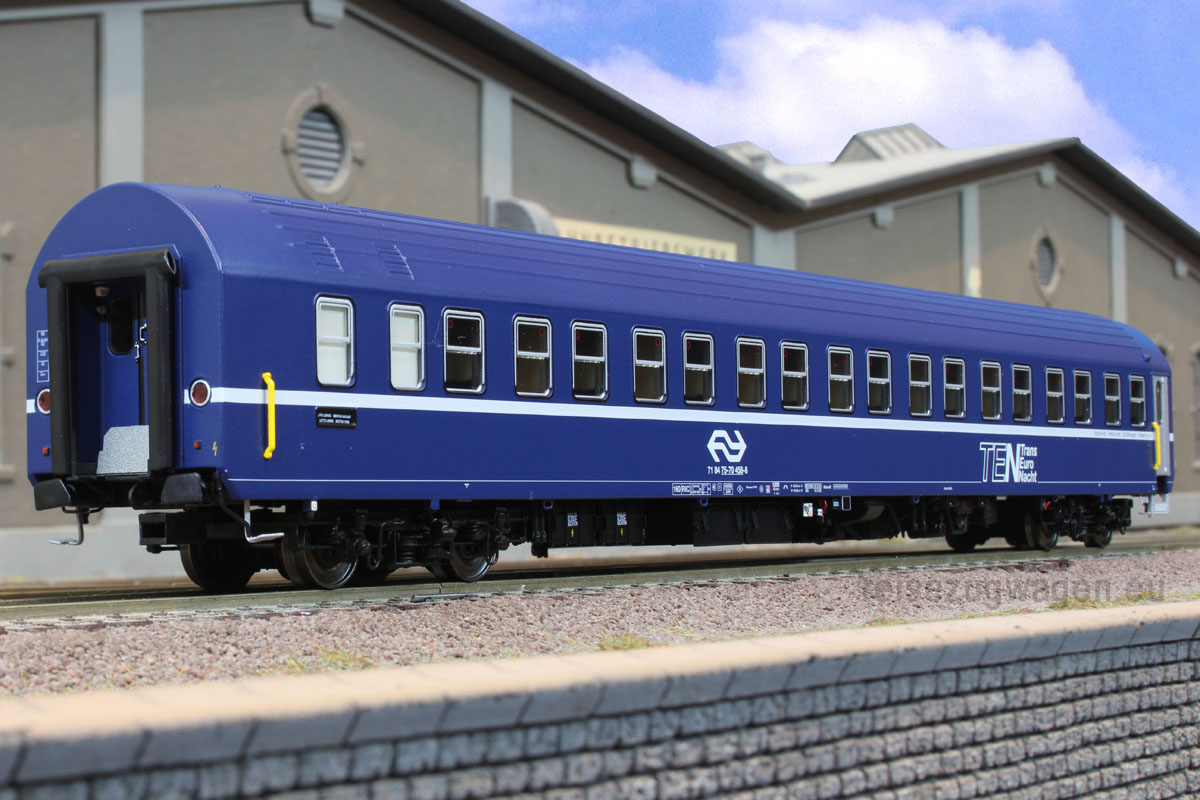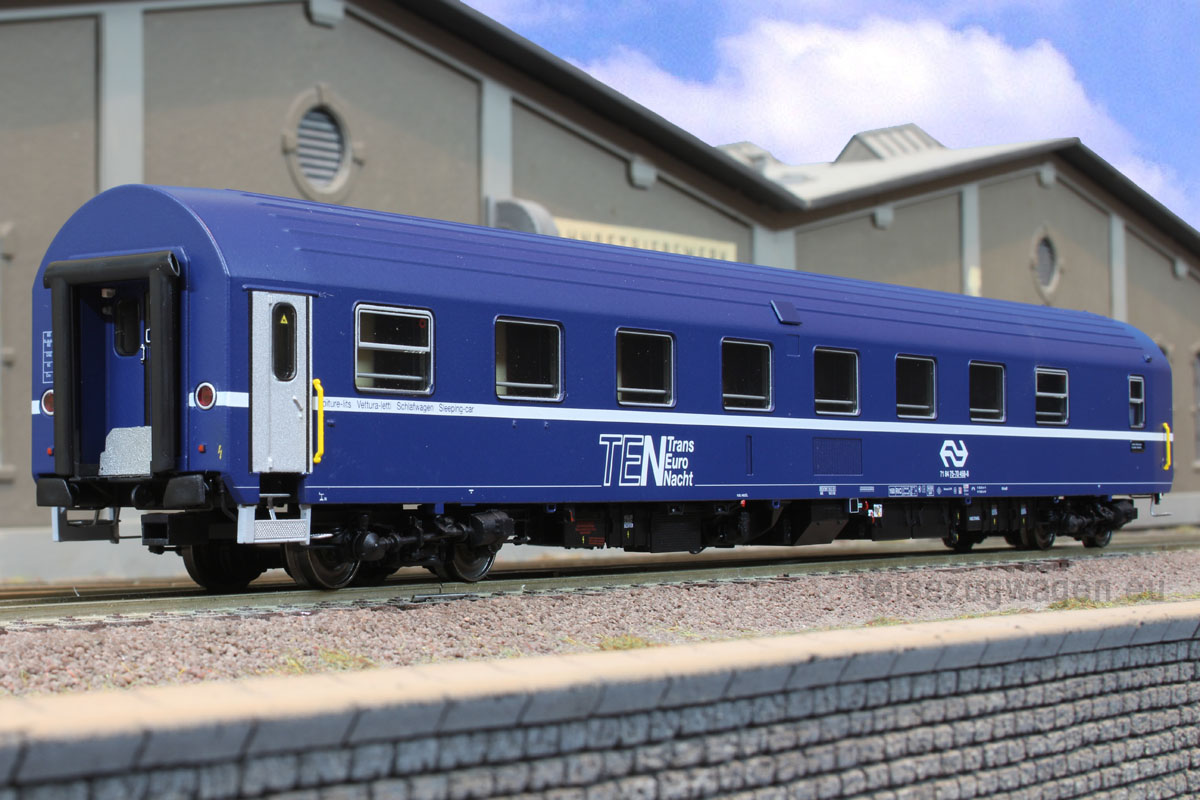 Schlafwagen Typ T2S der NS, MD 37 Drehgestelle, blaues Dach, Ep. IV