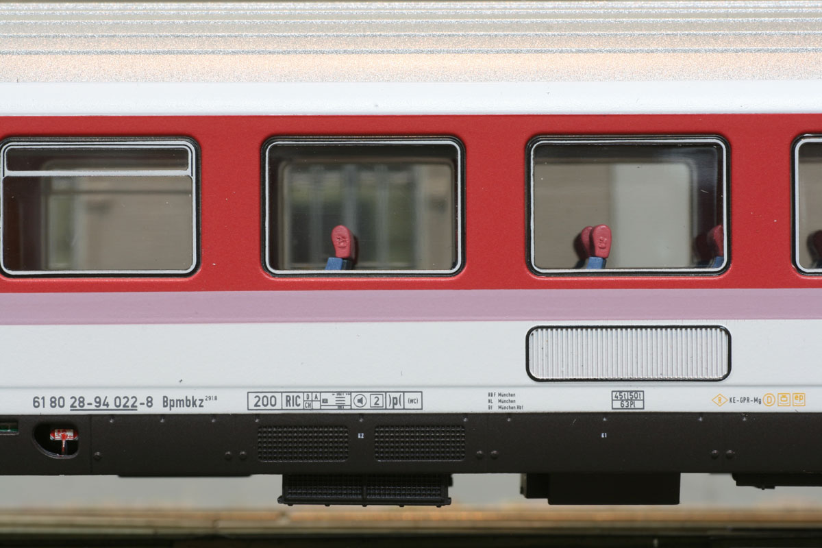 IR-Grossraumwagen der Bauart Bpmbkz 291.8 “Snack Point”, orientrote Farbgebung, Ep. V