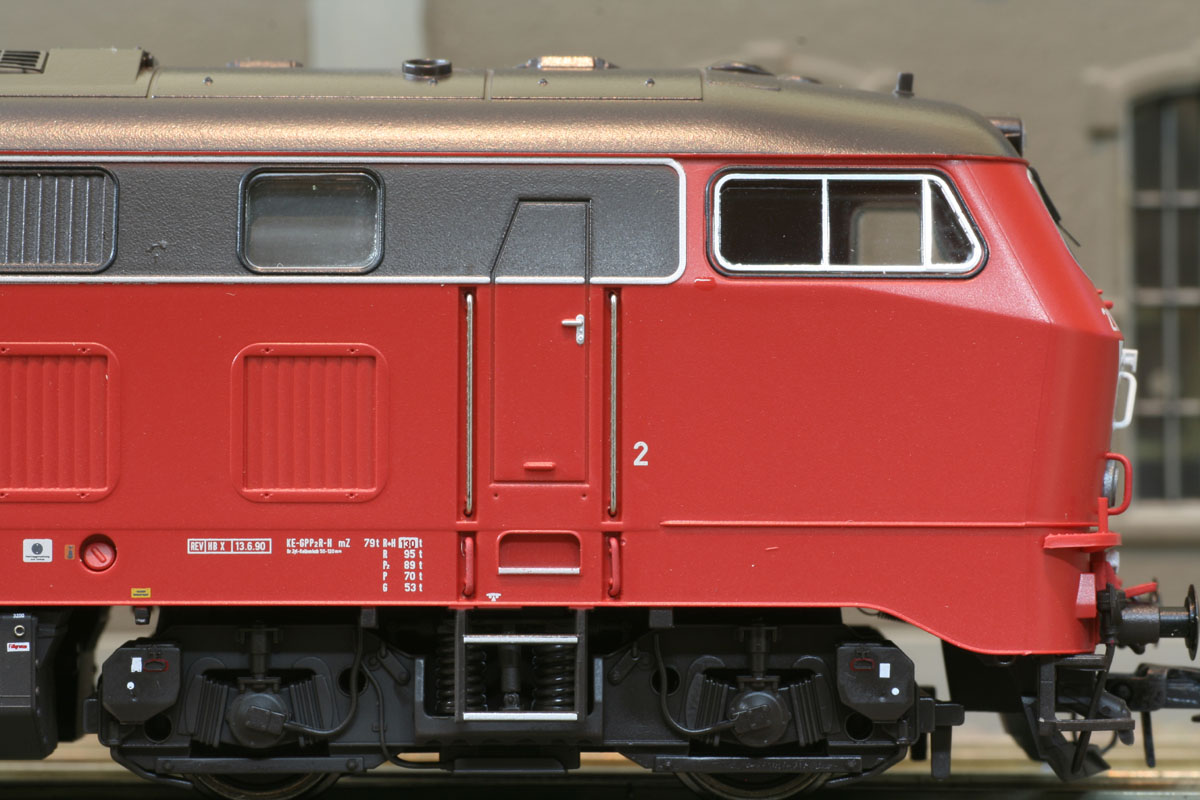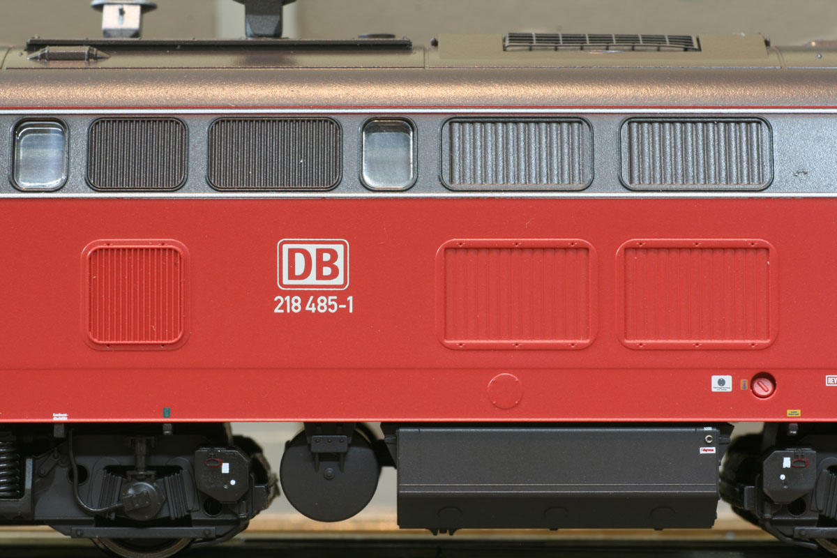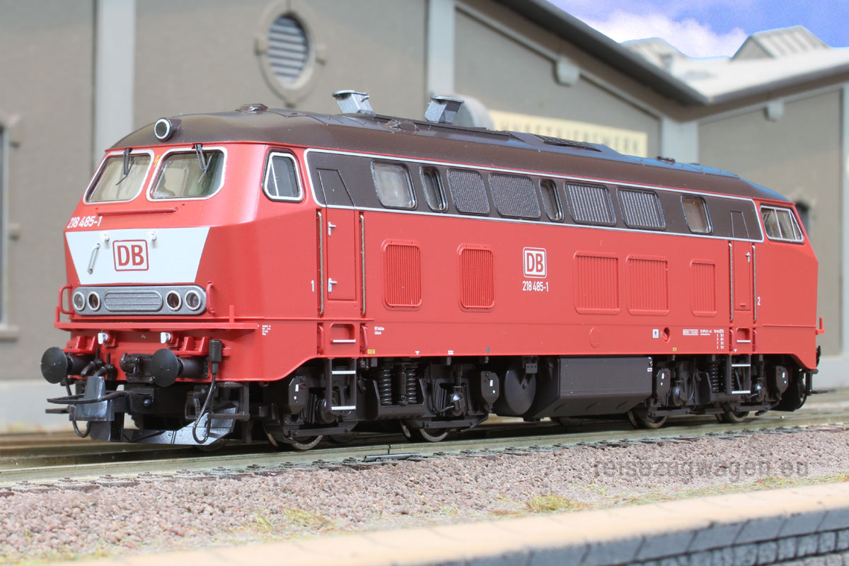 BR 218.4, orientrot, Ep. V, PluX 22, geschlossene Schienenräumer liegen bei.