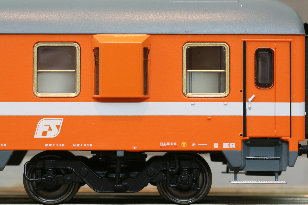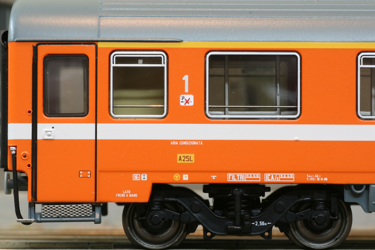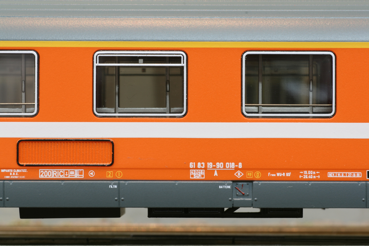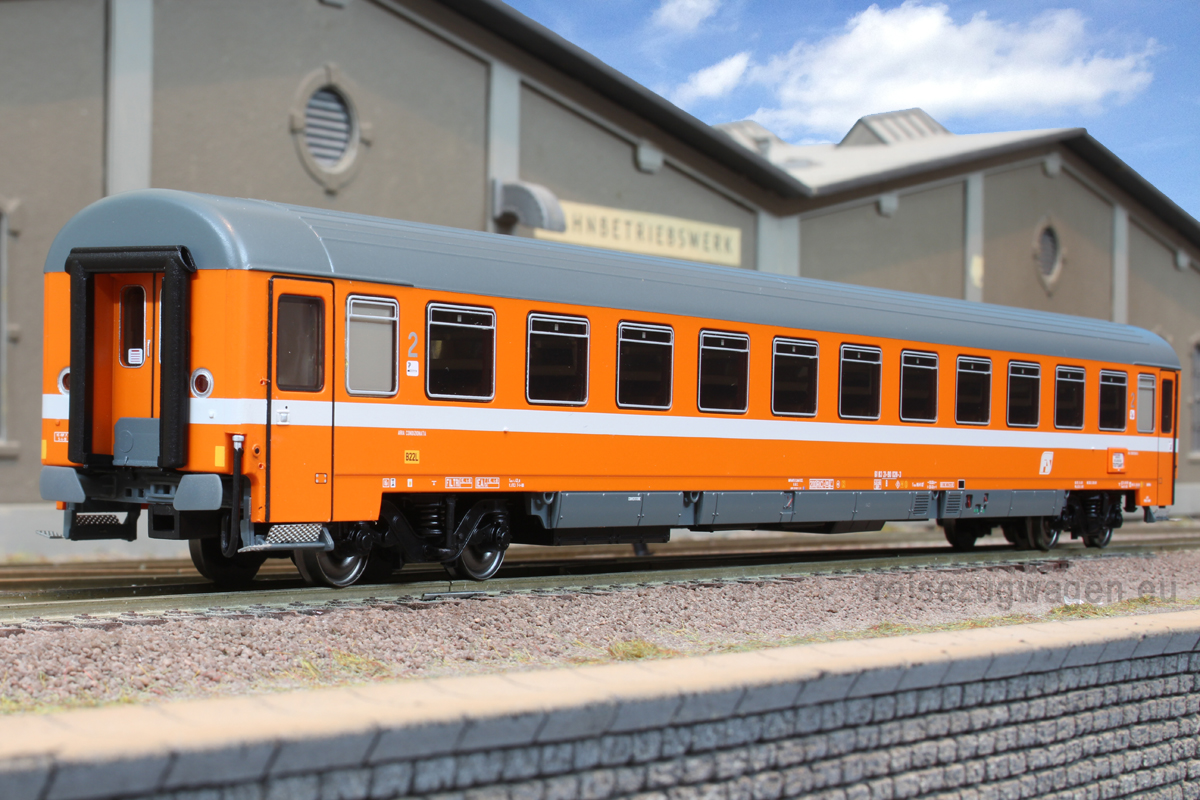 4-tlg. Wagenset D 383 “Hermann Hesse” (Genova B-Milano C-Chiasso-Gotthard-Zürich-Schaffhausen-Singen-Stuttgart) bestehend aus 1x D, 1x A (Eurofima), 2x B (Eurofima), alle Wagen mit schrägen Logo. Einmalige Sonderserie für reisezugwagen.eu