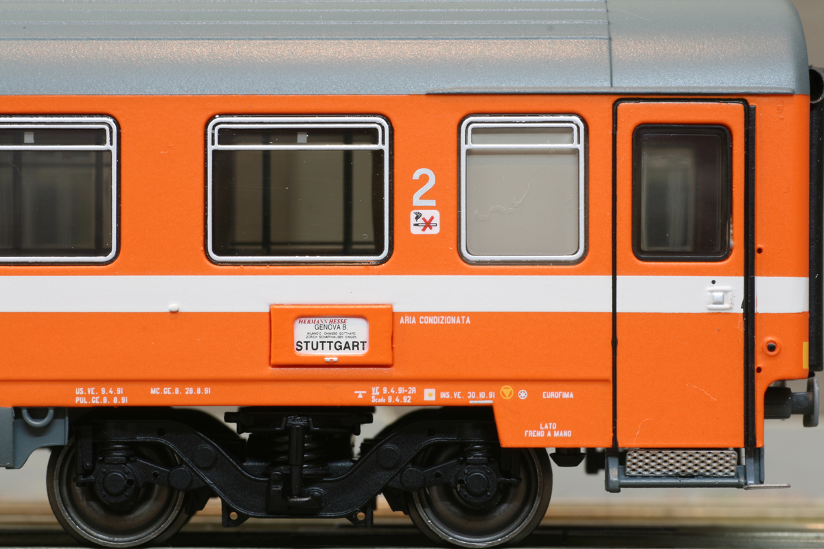 2-tlg. Wagenset D 383 “Hermann Hesse” (Genova B-Milano C-Chiasso-Gotthard-Zürich-Schaffhausen-Singen-Stuttgart) bestehend aus 1x A (Eurofima, schräges Logo), 1x B (Eurofima, altes Logo). Einmalige Sonderserie für reisezugwagen.eu
