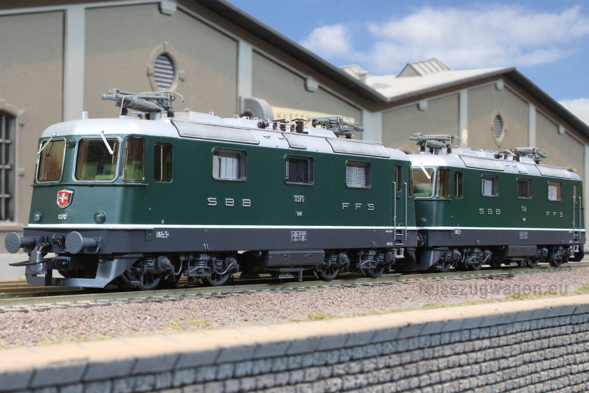 Set bestehend aus 2x Re 4/4 III der SBB, u.a. für den Einsatz am Gotthard. Ep. IV (Bilder zeigen AC und DC-Modelle). Digital mit Sound, PluX22-Schnittstelle.
