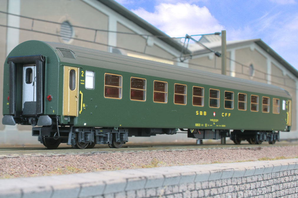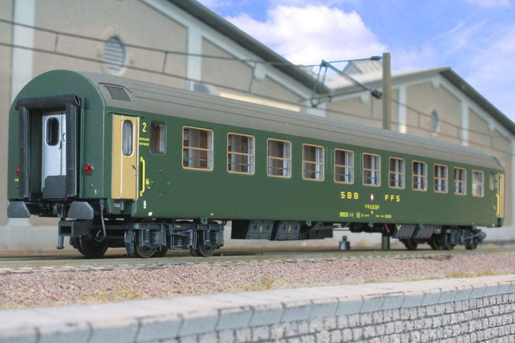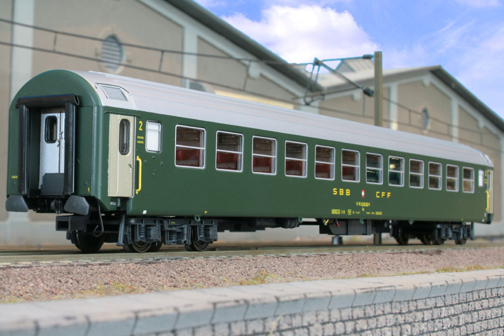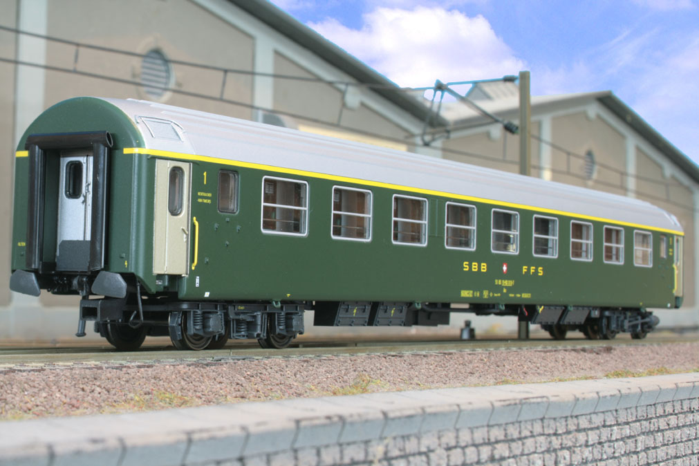 4-teiliges Wagen-Set des D 481 “Schweizerland” ( Stuttgart-Zürich ) bestehend aus 1 Bm (12 Abteile), 2 Bm (11 Abteile) und 1 Am des Typs UIC-X mit altem SBB-Logo, Ep. IV. Einmalige Sonderserie, nur hier erhältlich.