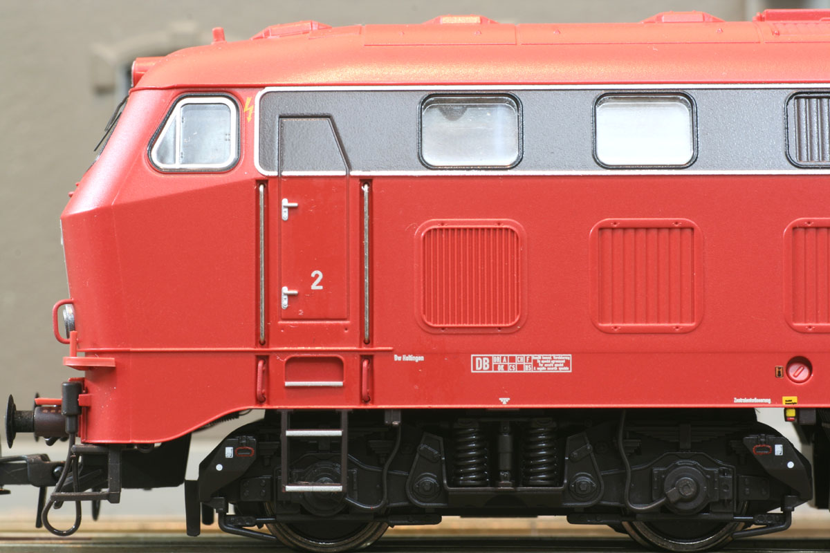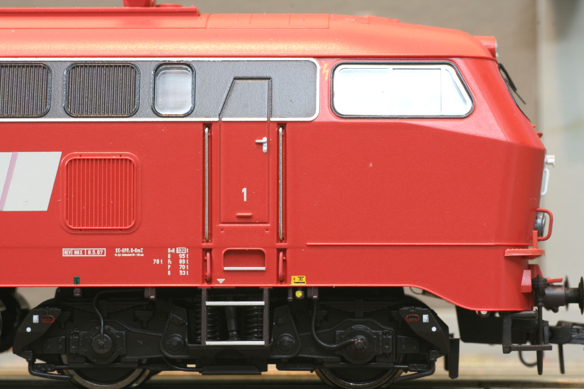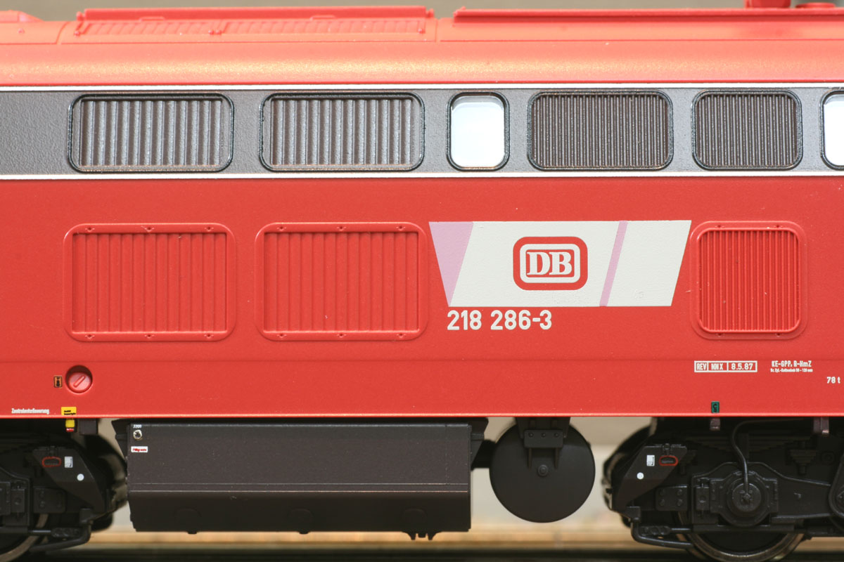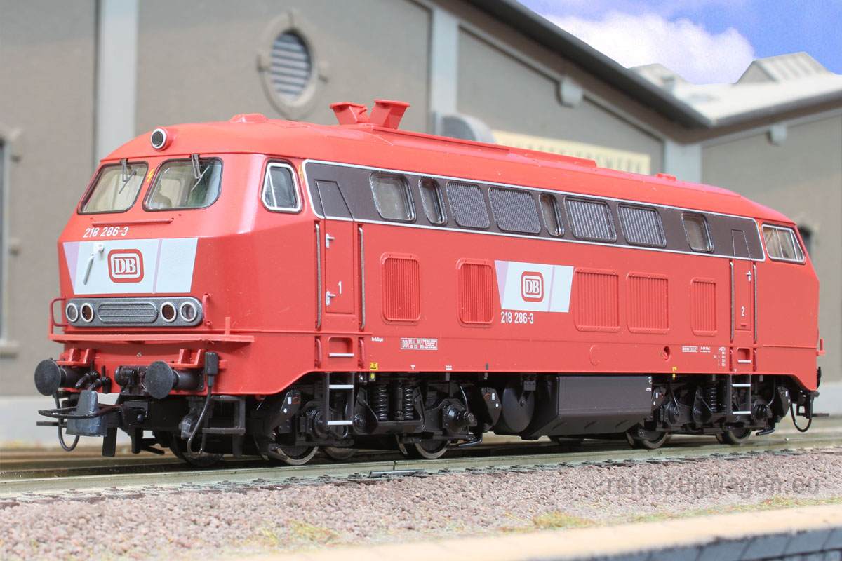Dielshydraulische Lokomotive der Baureihe 218 in orientroter Versuchslackierung, Ep IVa, PluX22 Schnittstelle. Neu und unbespielt.