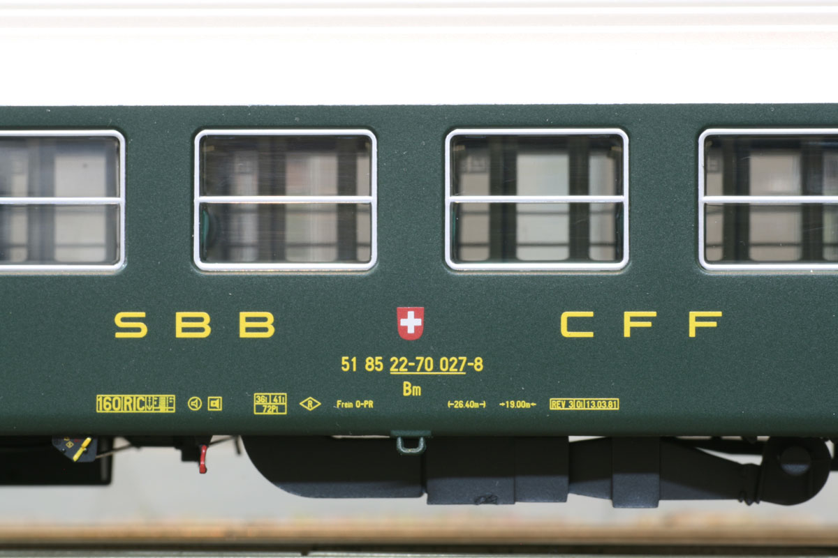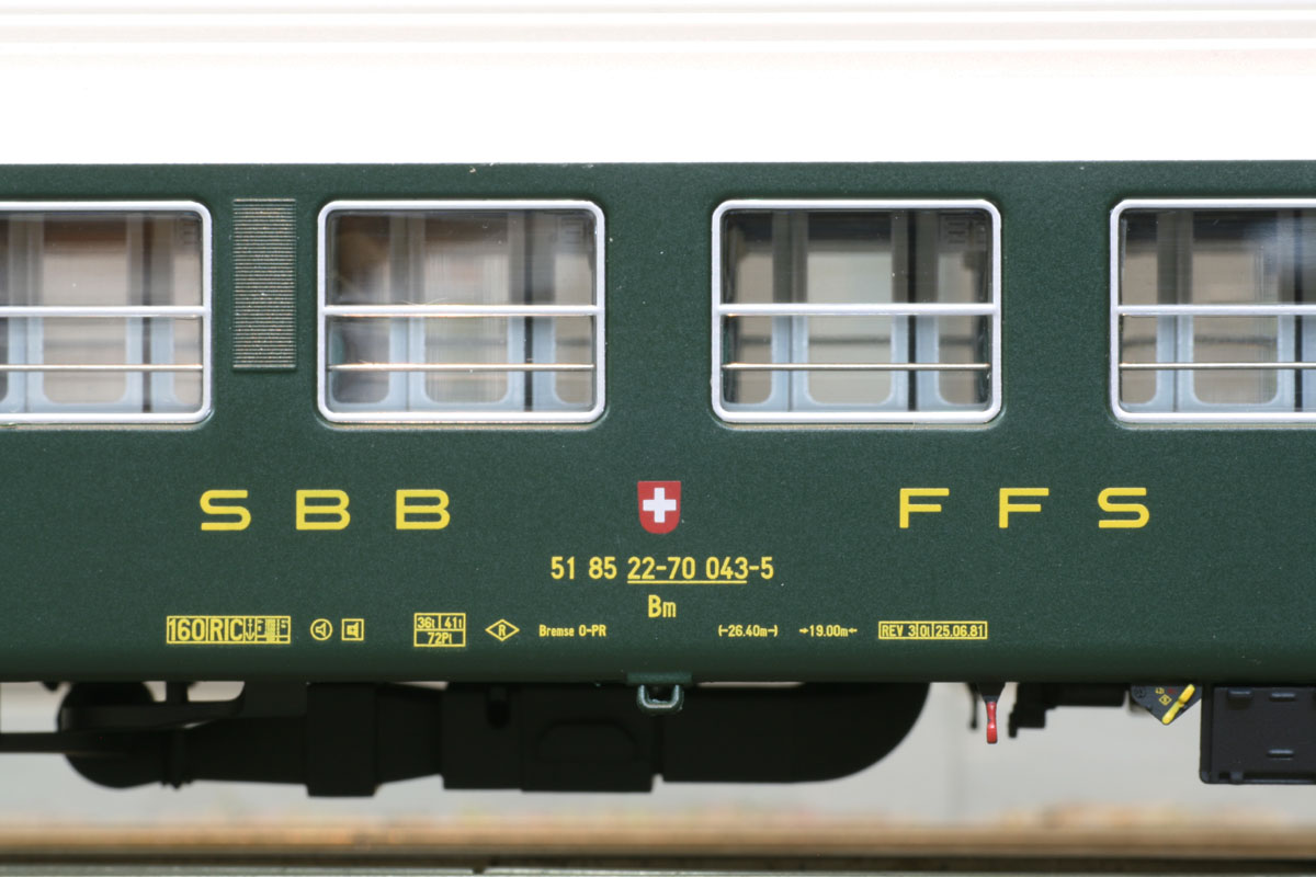 3-teiliges Set RIC-Wagen bestehend aus je 1x Dm und 2x Bm ( 12 Abteile ) Ausführung mit altem SBB-Logo. Ep IVa-IVb