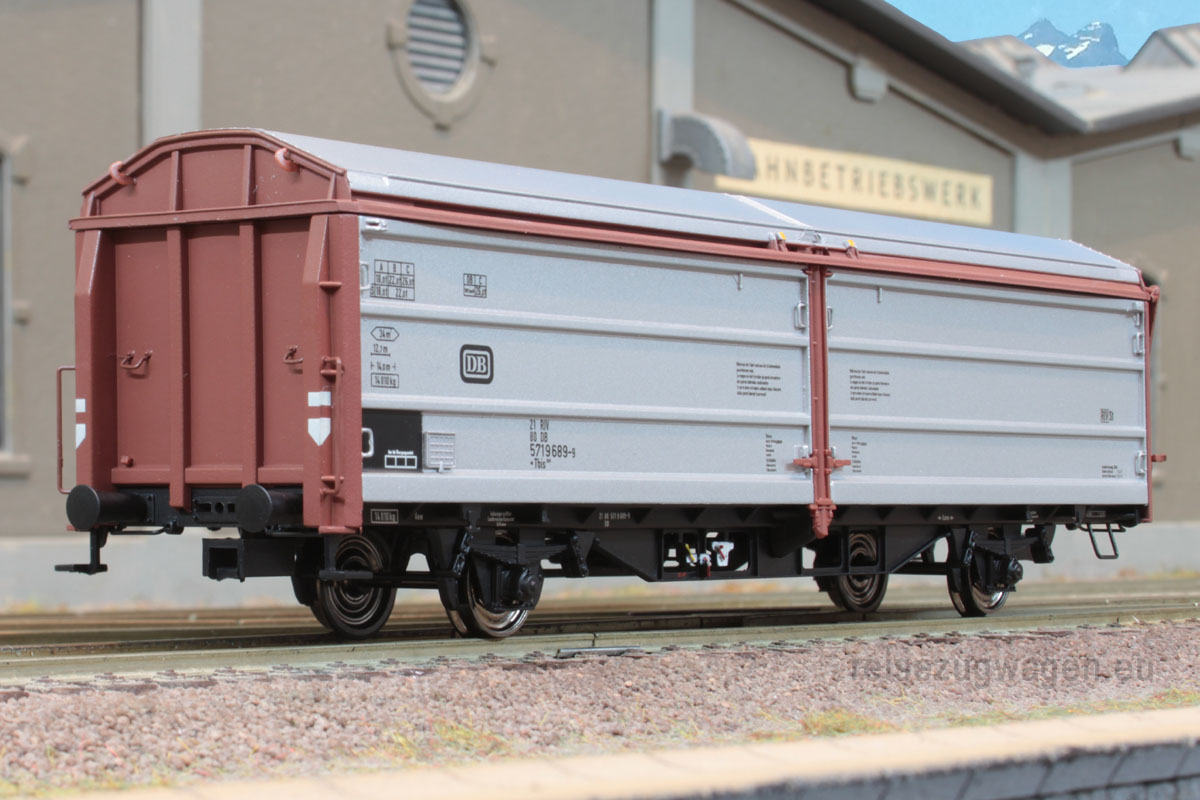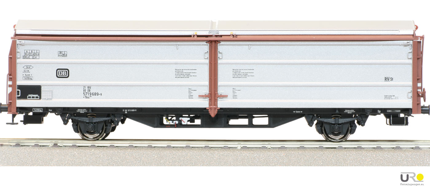 2-achsiger Schiebewand-/Schiebedachwagen der Bauart Tbis 268 der DB , Ep IV