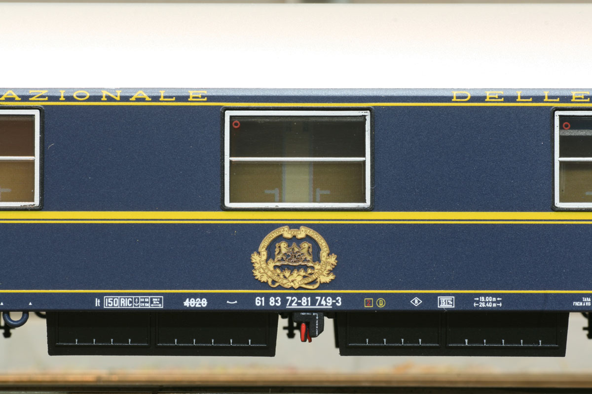 Schlafwagen des Typs MU der CIWL (FS). Die Lackierung und Beschriftung entspricht der Ep. IVa (1975)