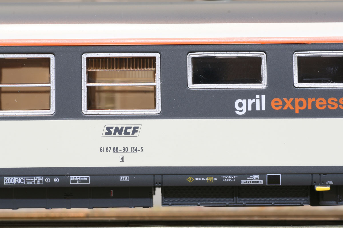 3- tlg. Wagen- Set “Le Montaigne” bestehend 1x “Gril Express”, 1x A10rtu, 1x B11tu “Corail”. Ep. IV