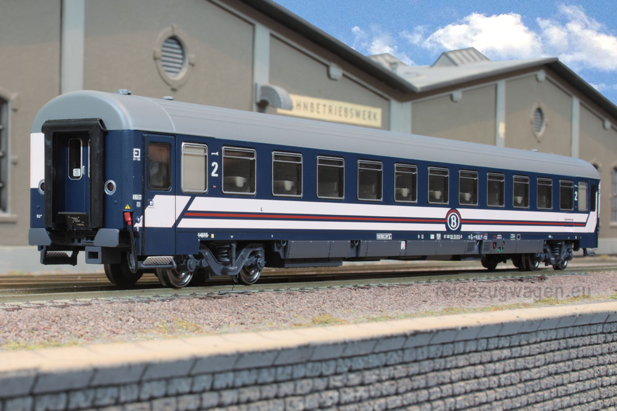 Liegewagen Typ Bc “Eurofima” der SNCB, großes Logo Logo, heller rosa Streifen, Ep. V