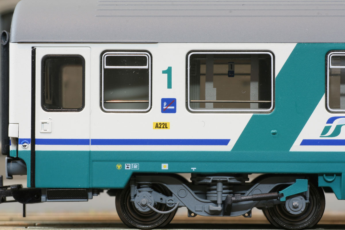 1. KLasse Abteilwagen (Typ Eurofima) der FS XMPR- Lackierung mit “InterCity”- Schriftzug, Ep. V