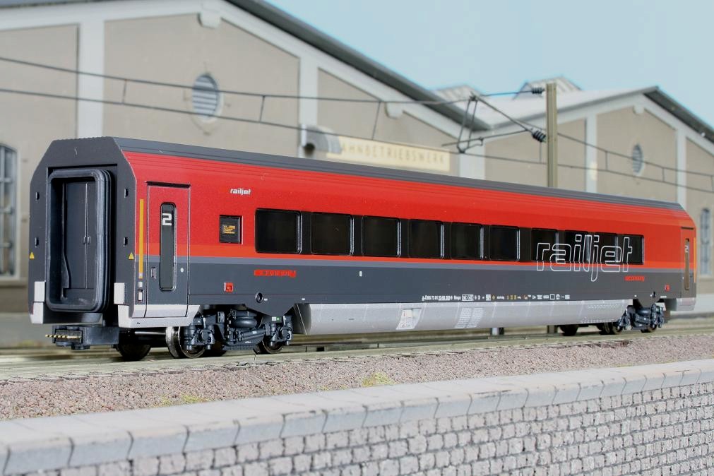 2-teiliges Ergänzungs-Set des “RailJet” der ÖBB bestehend 1 Bistro-Wagen (ARmpz) und einem Economy Wagen Klasse 200 (Bmpz).