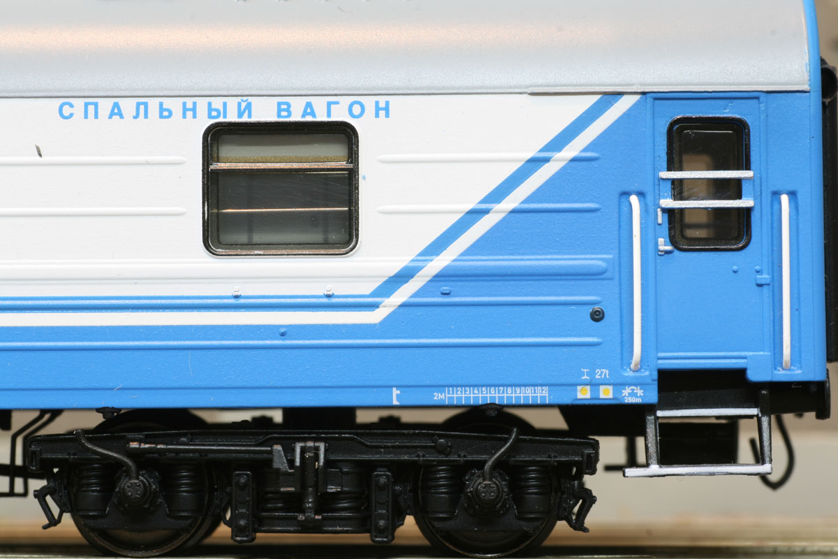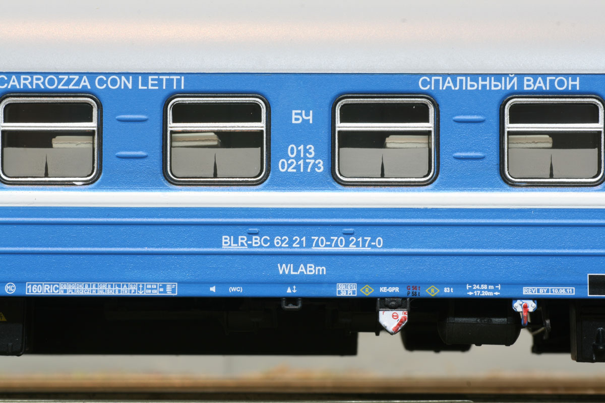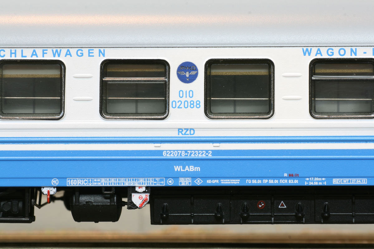 3-tlg. Wagen- Set des D 1248/1249 “Saratov Express” bestehend aus 3x WLABm der RZD. Die Lackieung und Beschriftung entspricht der Ep. V