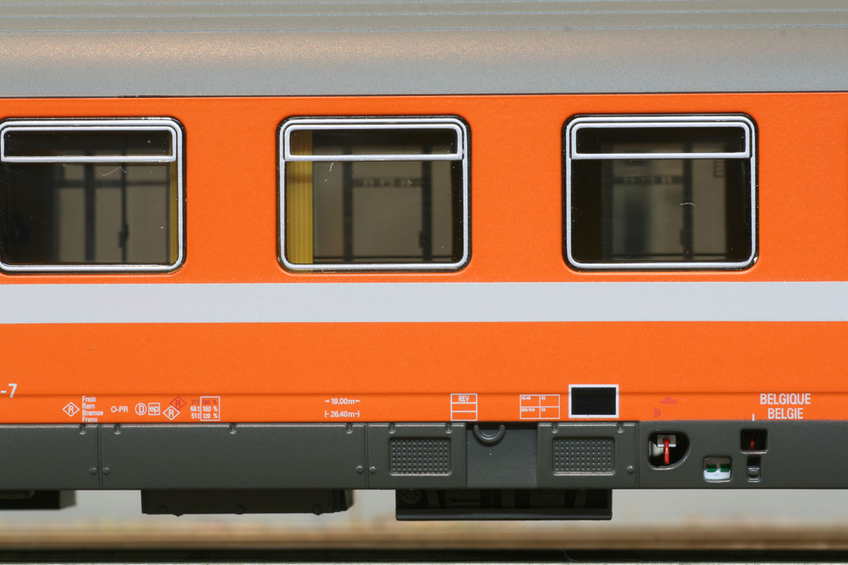 2. Klasse Abteilwagen (Typ Eurofima) der SNCB in C1- Lackierung der Ep IV. Ursprunsausführung mit Dachlampe