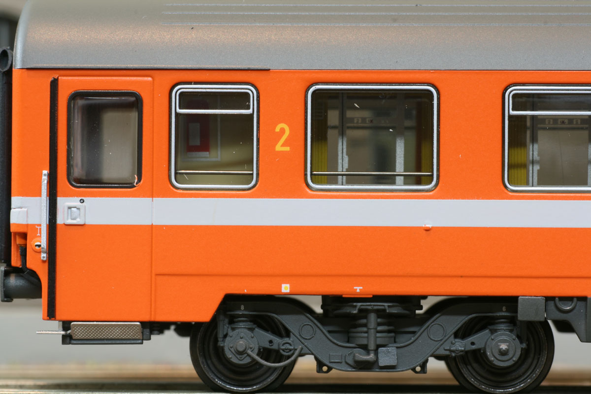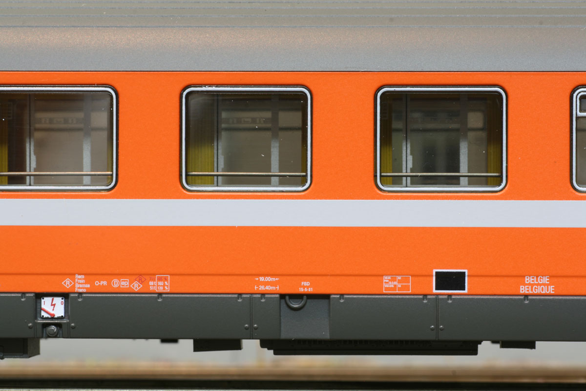 2. Klasse Abteilwagen (Typ Eurofima) der SNCB in C1- Lackierung der Ep IV. Ursprunsausführung mit Dachlampe