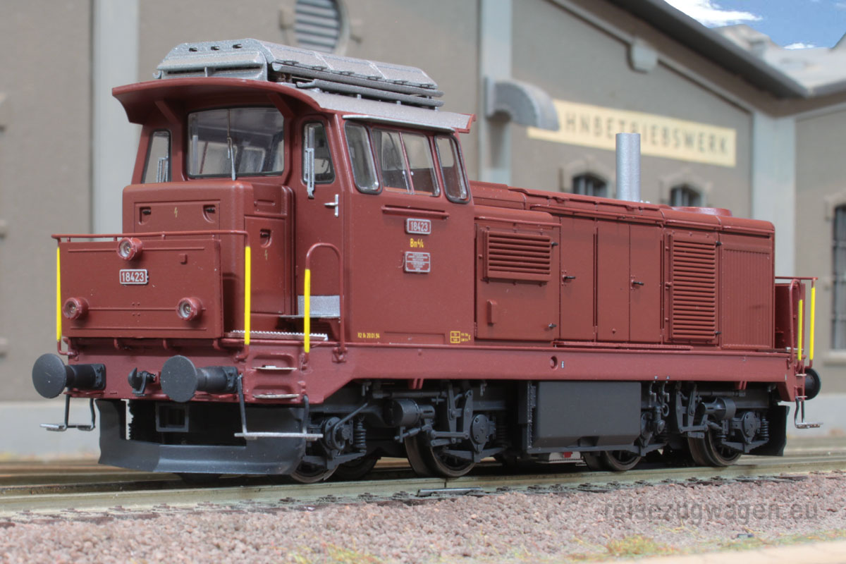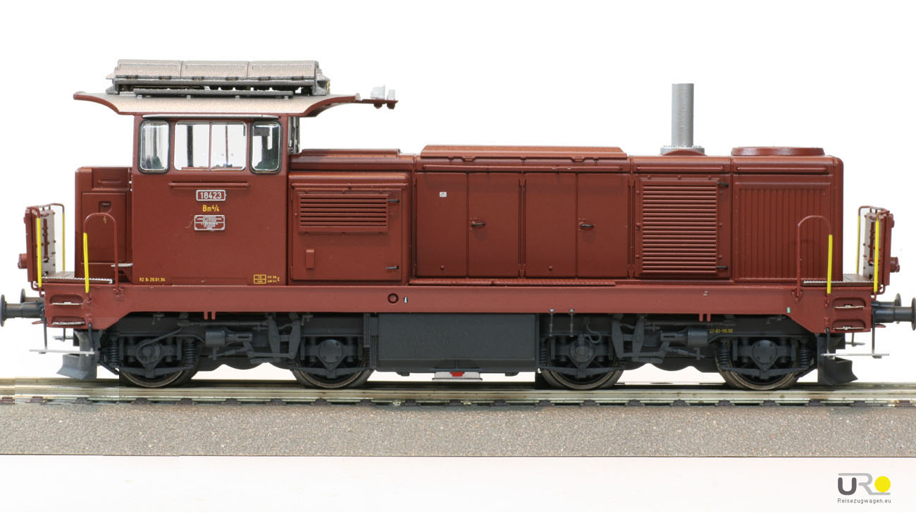 Rangierlokomotive der Baureihe Bm 4/4 (18428) der SBB, braune Lackierung, mit Schornstein, Ep IV
