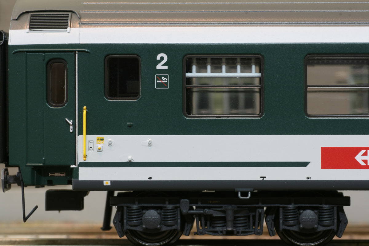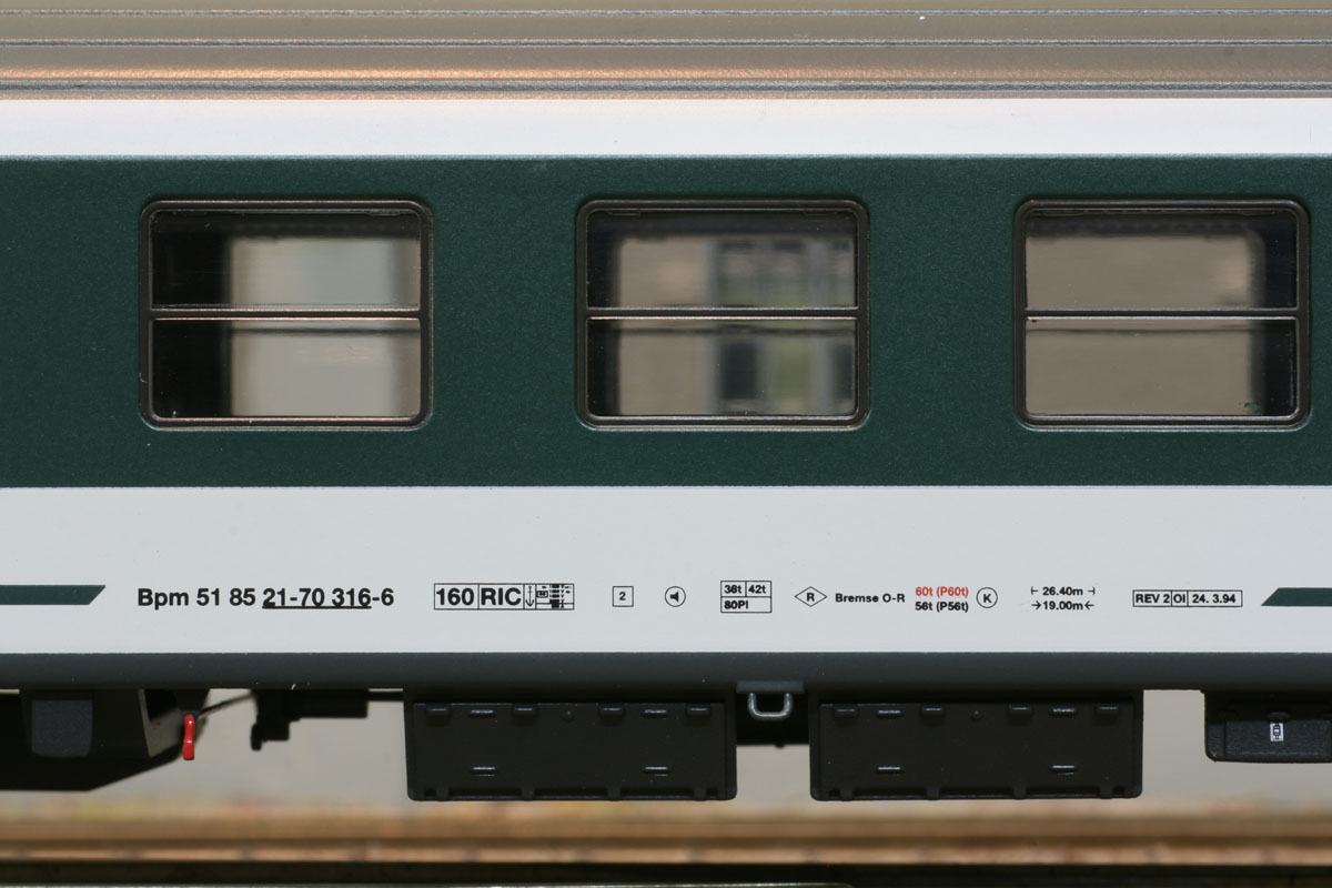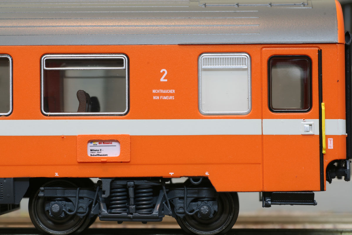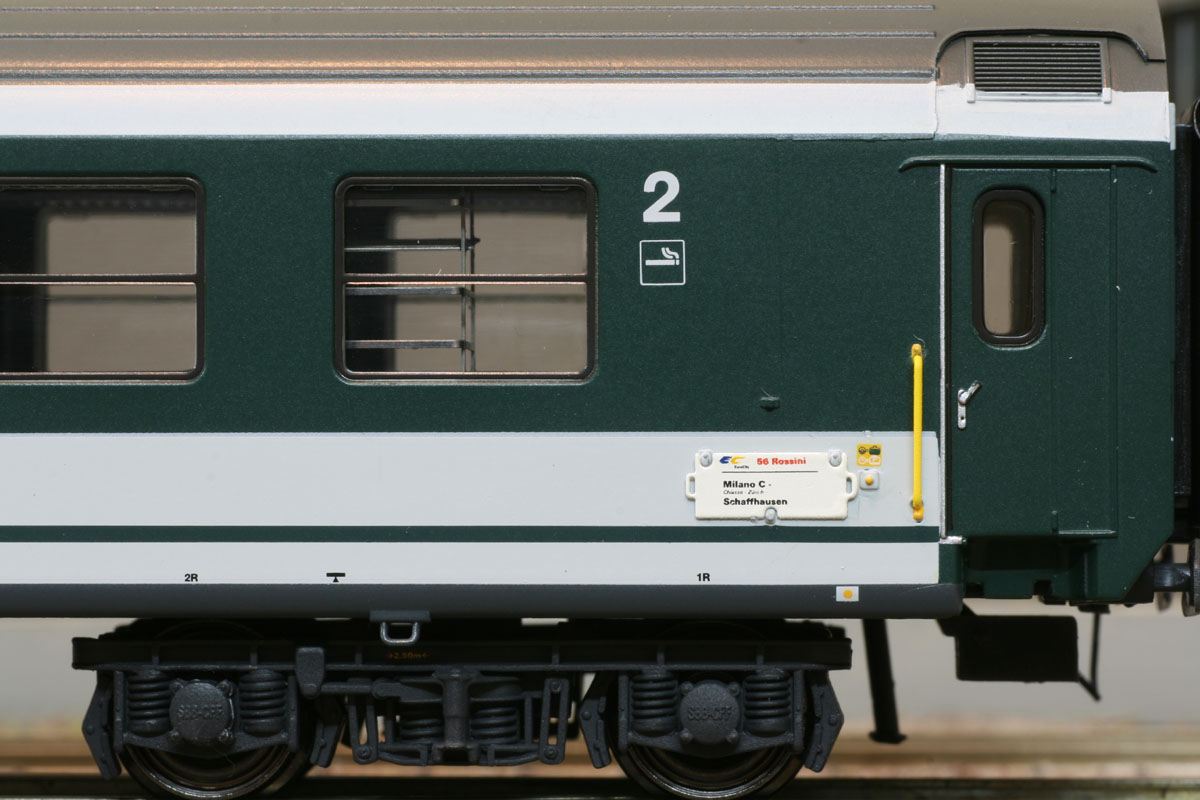 3-tlg Wagenset des EC 56 “Rossini” (Mailand- Schaffhausen) bestehend aus 1x WRm (Typ RIC), 1x Bpm-51 (Typ RIC), 1x Bpm-500 der SBB, Ep V