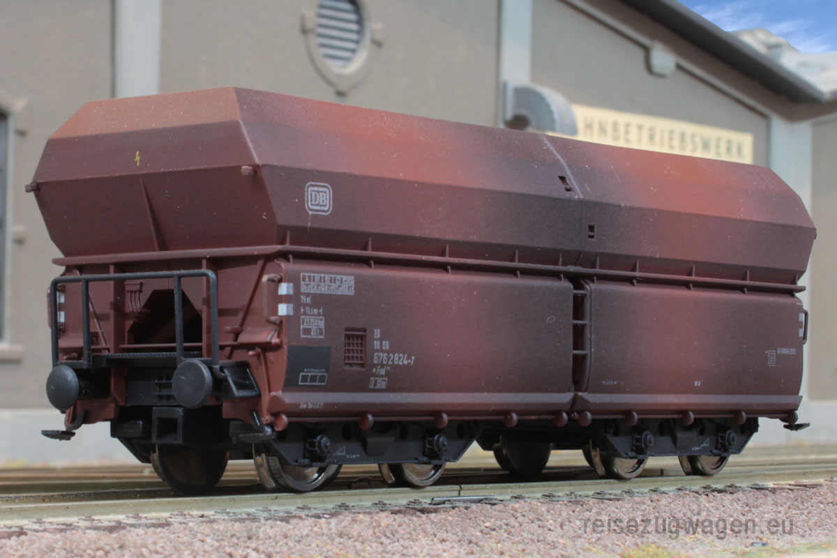 4-tlg. Wagen- Set bestehend aus 4 Selbstentladewagen der Bauart Fad 167 mit versch. Betriebsnummern, gealtert. Neuwertiger Zustand, OVP ohne Klarsicht- Umverpackung.