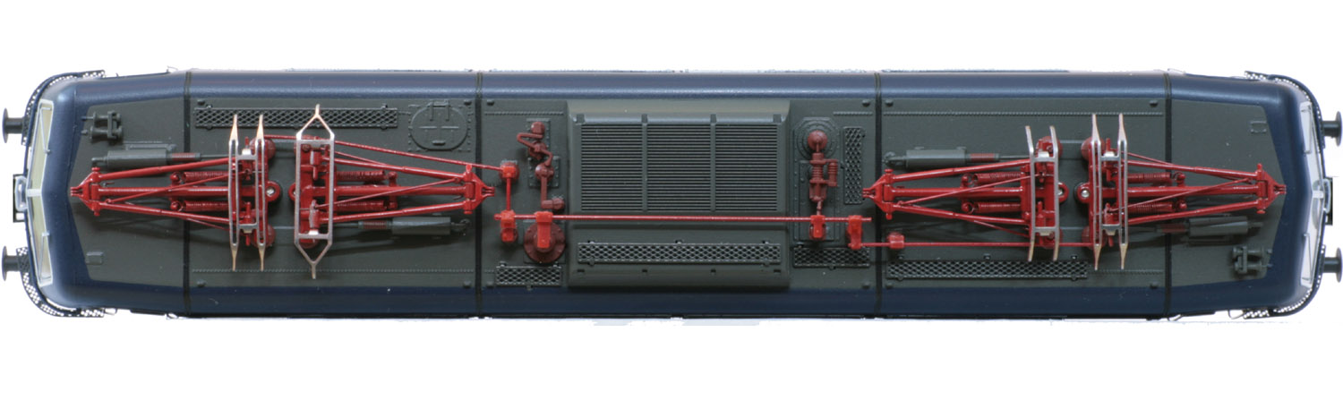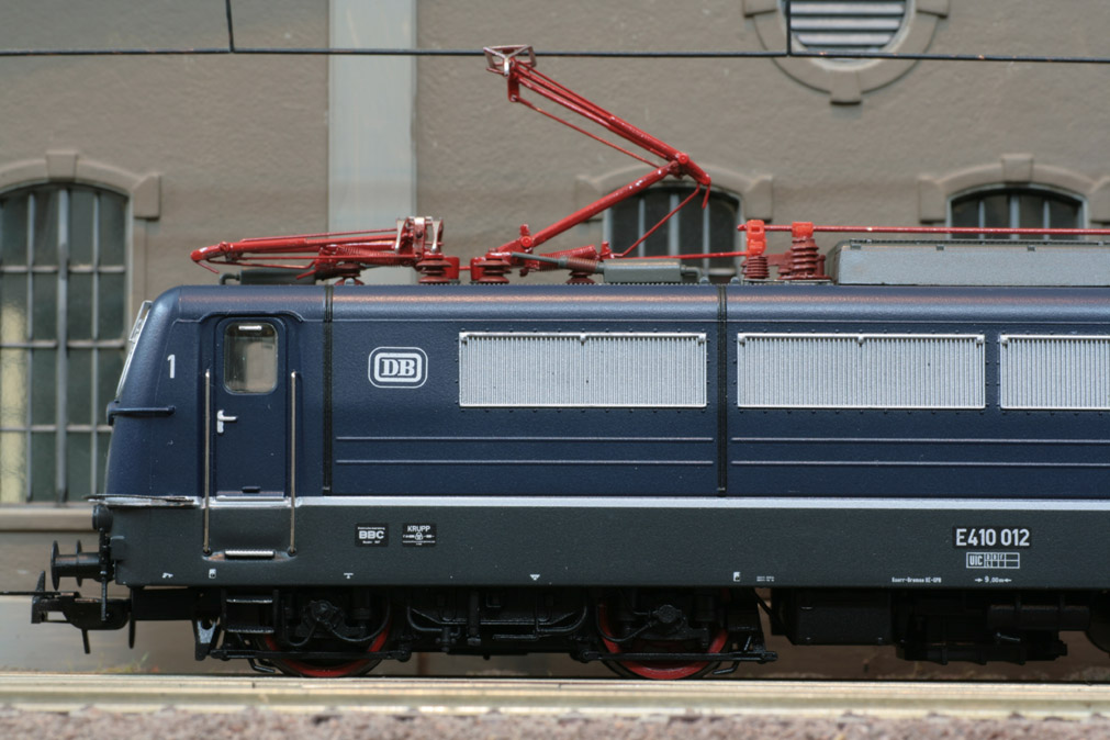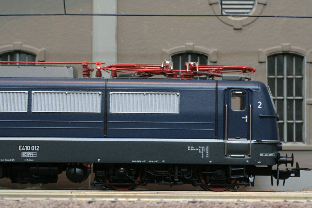 Modell einer Mehrsystem-Lokomotive der Baureihe 184 ( “Europalok” ). Die Maschine besitzt 4 Stromabnehmer, die Dachtritte sind durchbrochen. Die Lackierung und Beschriftung entspricht der Ep. III
