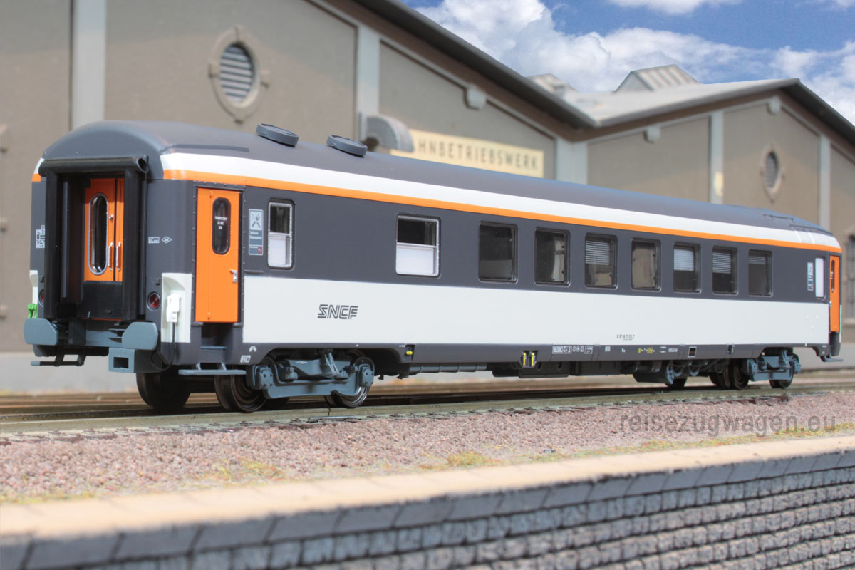 3-tlg Wagens-Set der SNCF bestehend aus je 1x A10 (40160), 1x Vru (40348) und 1x B11 (40161). “Corail”-Farbgebung mit “Spaghetti”-Logo, Ep IVb-V. Lieferung im LS 3er-Karton
