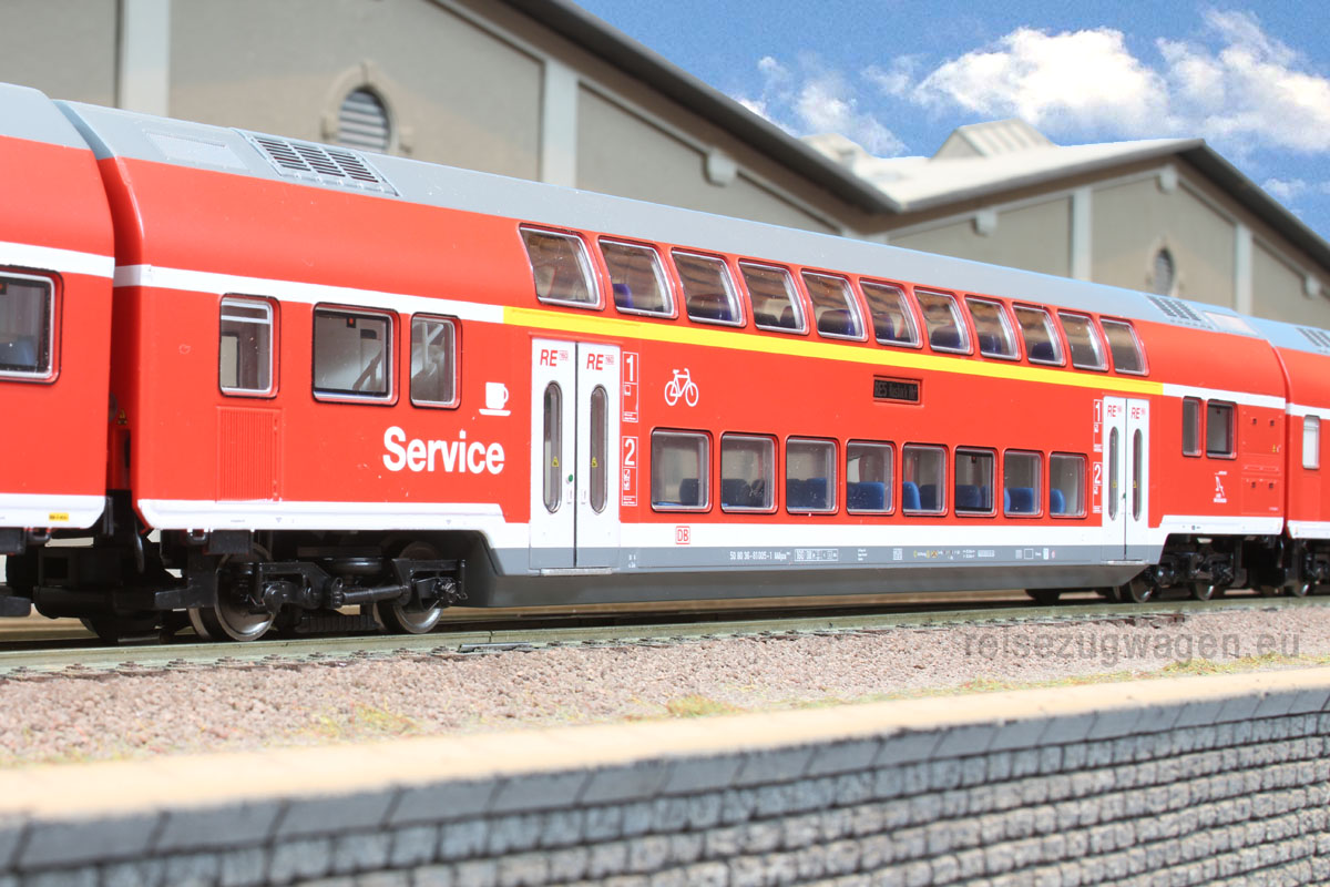 Doppelstock-Stitzwagen 1./2. Klasse Bauart DABpza 785.1 des Regionalverkehr Nordost.
