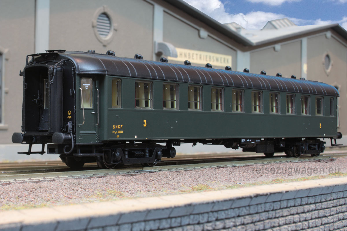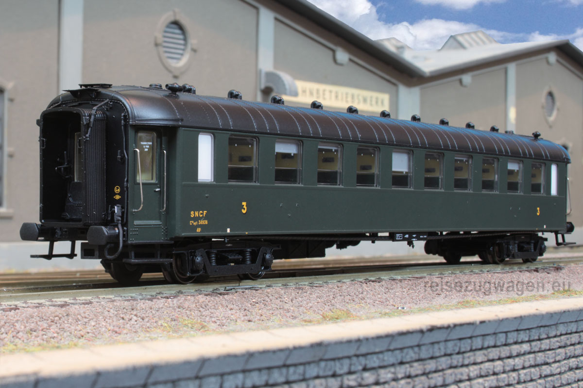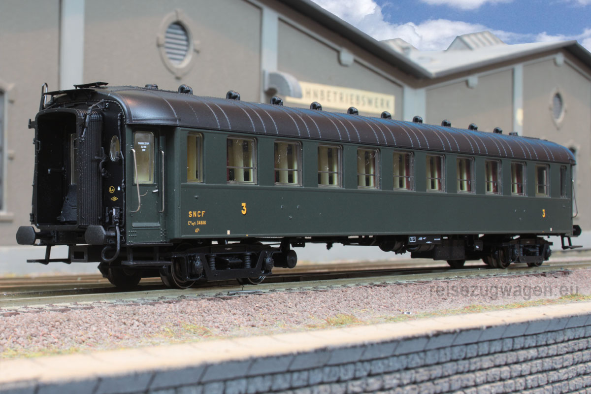 3-tlg. Wagen- Set bestehend aus 3x C10ymfi (Typ OCEM) der SNCF, versch. Puffer und Dachlüfter, Ep III