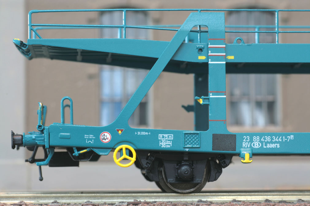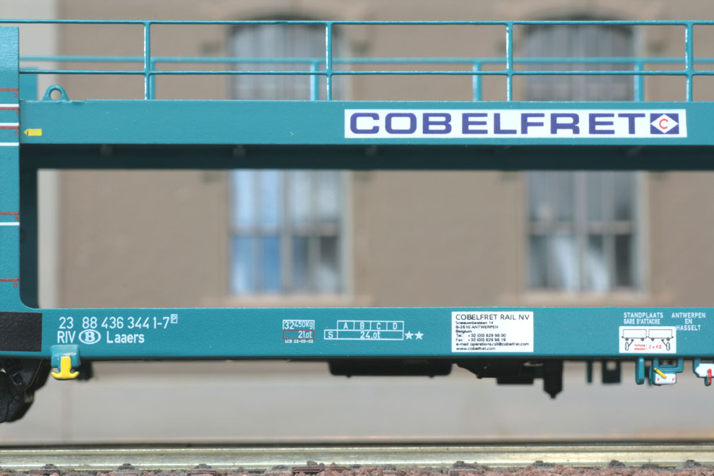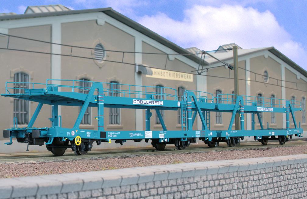 4-teiliges Auto-Transportwagen-Set “Cobelfret” eingestellt bei der SNCB, grün, Ep. V