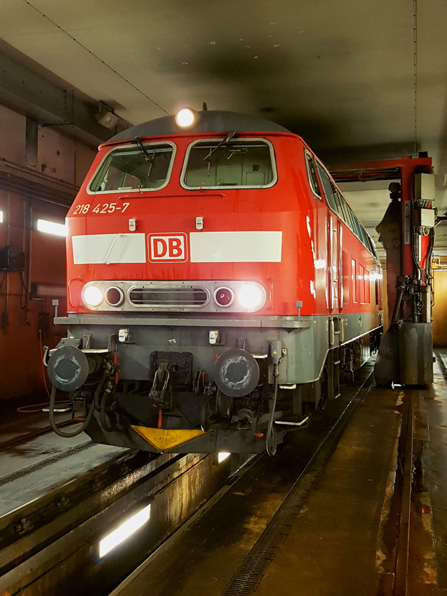 Wer schön sein will muss leiden, 218 425-7 in der örtlichen Waschanlage.