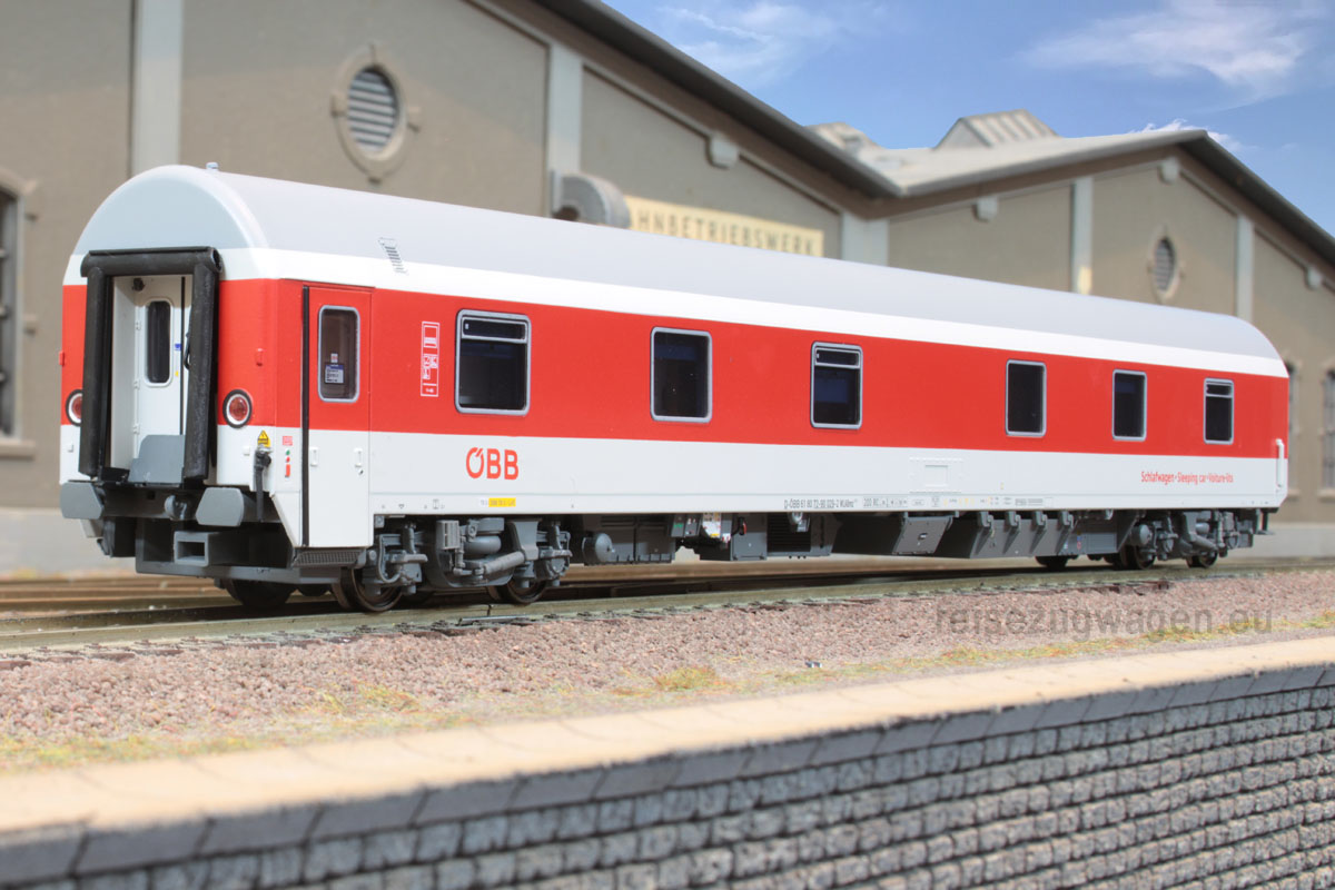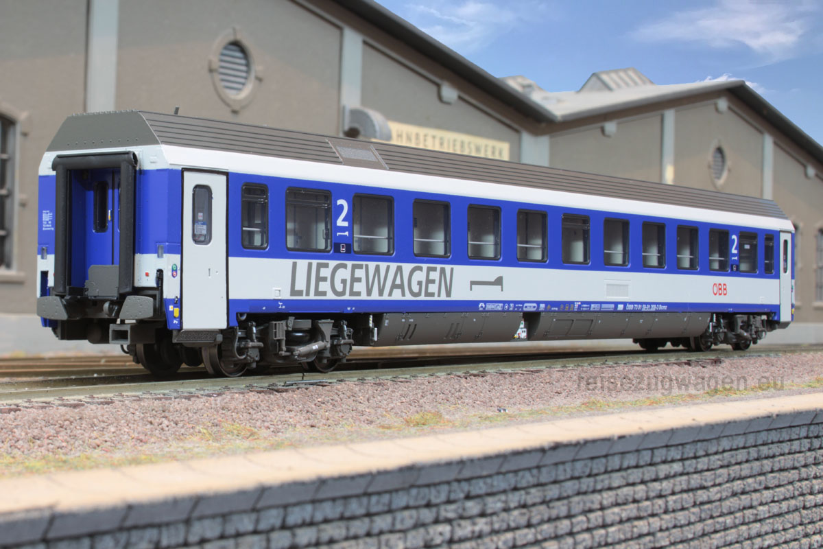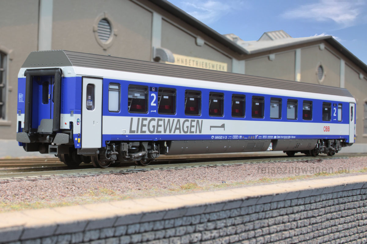3-tlg. Wagen- Set bestehend aus 1x WLABmz (Typ 173) und 2x Bcmz 59-91.2 (Typ Modular) der ÖBB, Ep VI. Das Set entspricht in der Zusammenstellung dem Artikel 47152