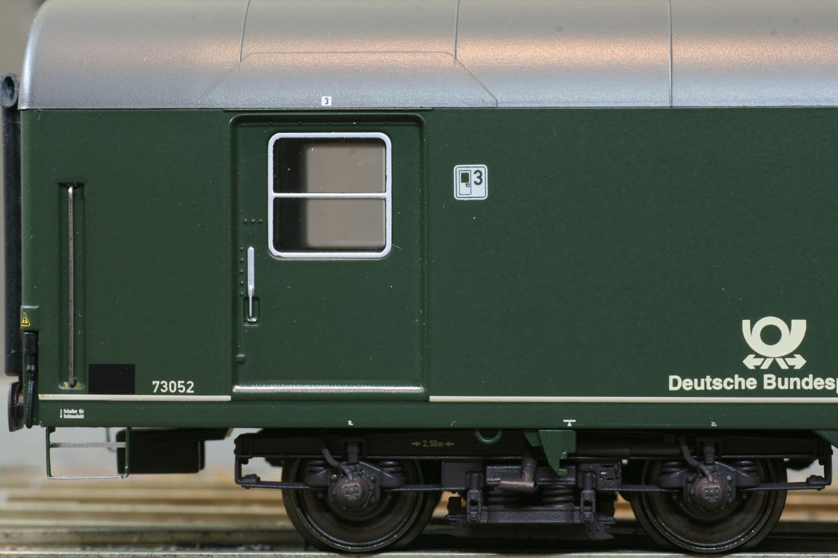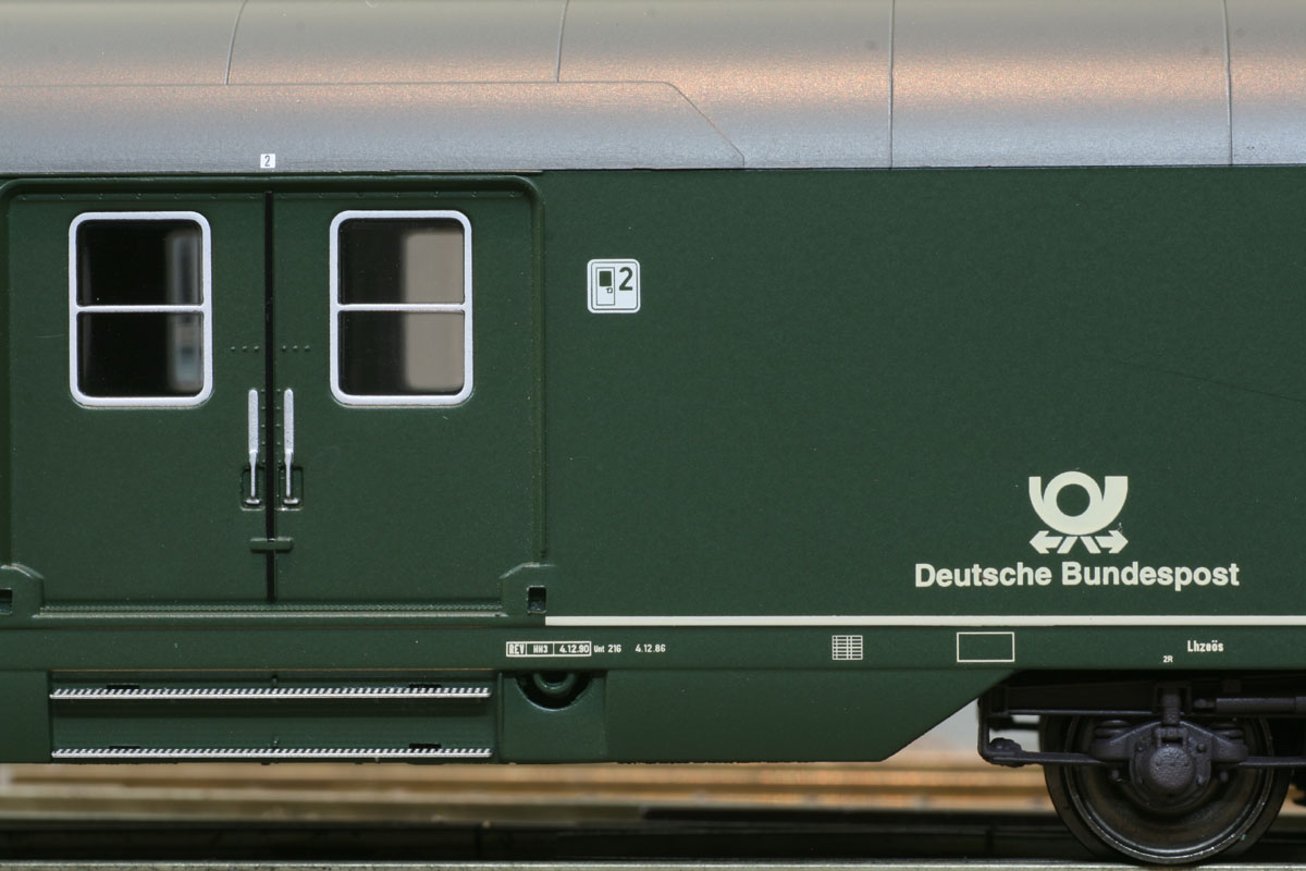 2- tlg. Wagen- Set bestehend aus 2x Post mrz, grün, grüner Längsträger, neues Posthorn, “Deutsche Bundespost”, Ep IVb