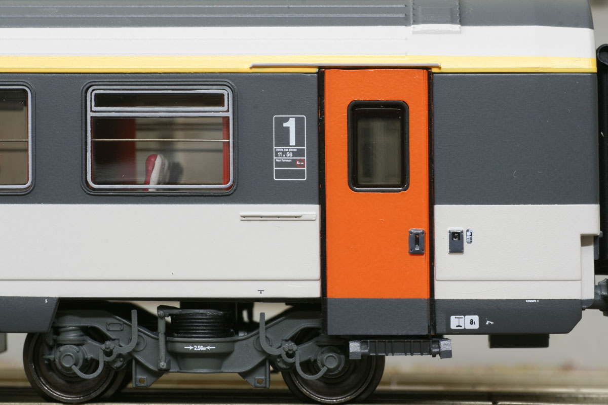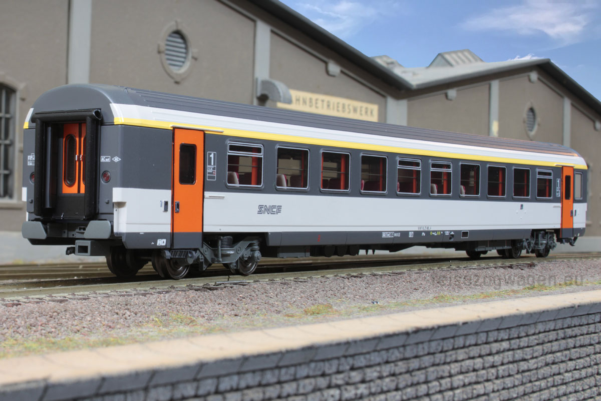 1. Klasse Schnellzugwagen der Bauart VTU A10rtu “Corail” (national) mit Schwenkschiebetüren, Nudellogo, Ep IV-V