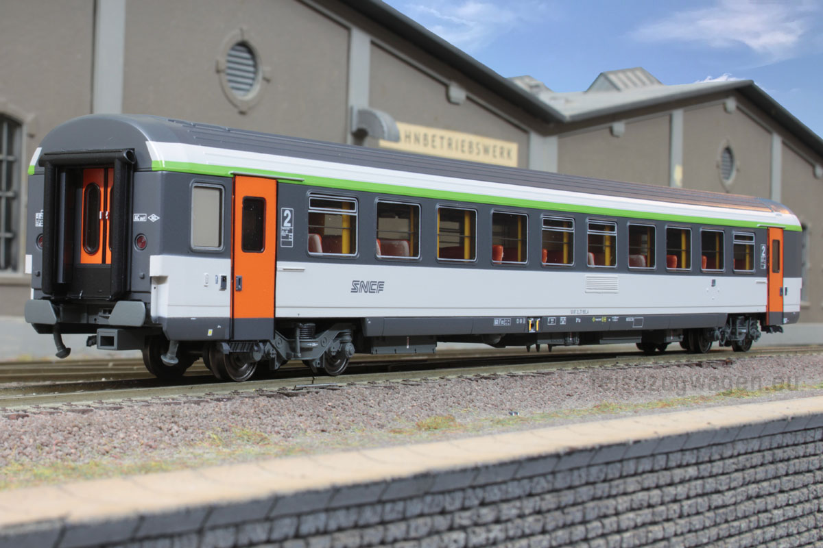 2. Klasse Schnellzugwagen der Bauart VTU B10tu “Corail” (national) mit Schwenkschiebetüren, Nudellogo, Ep IV-V