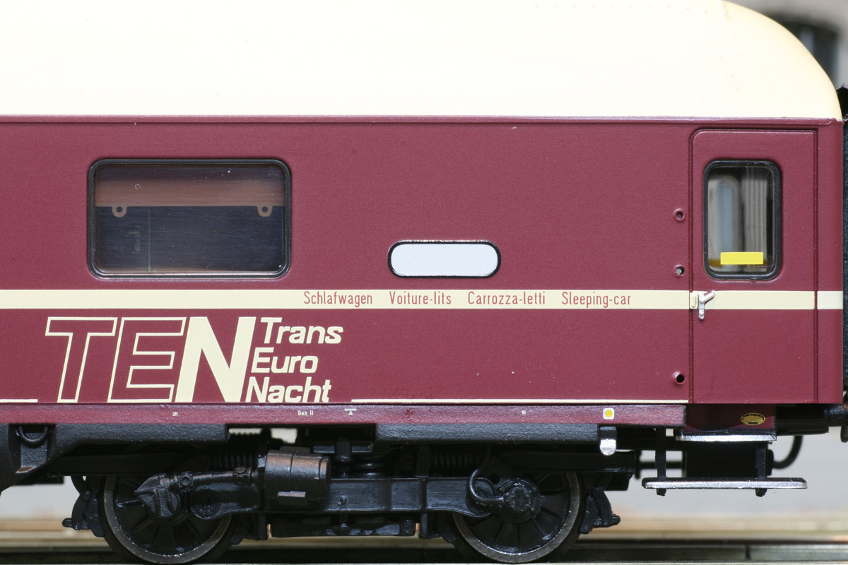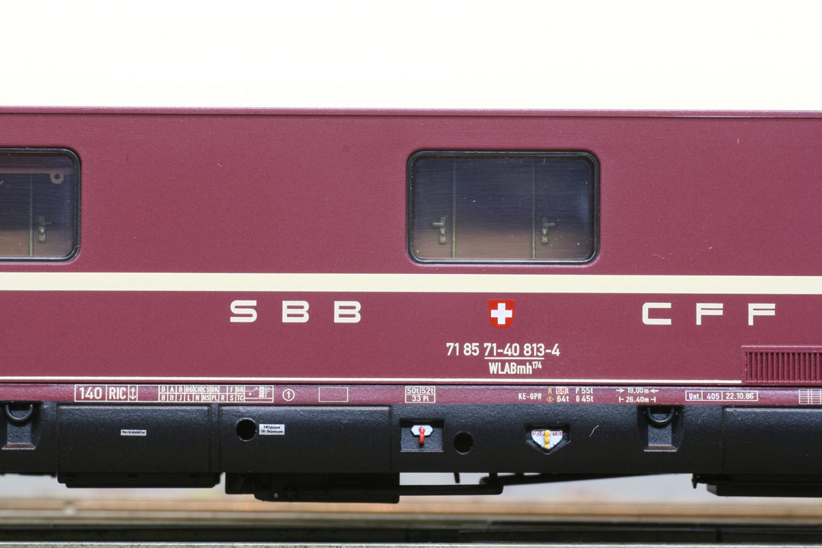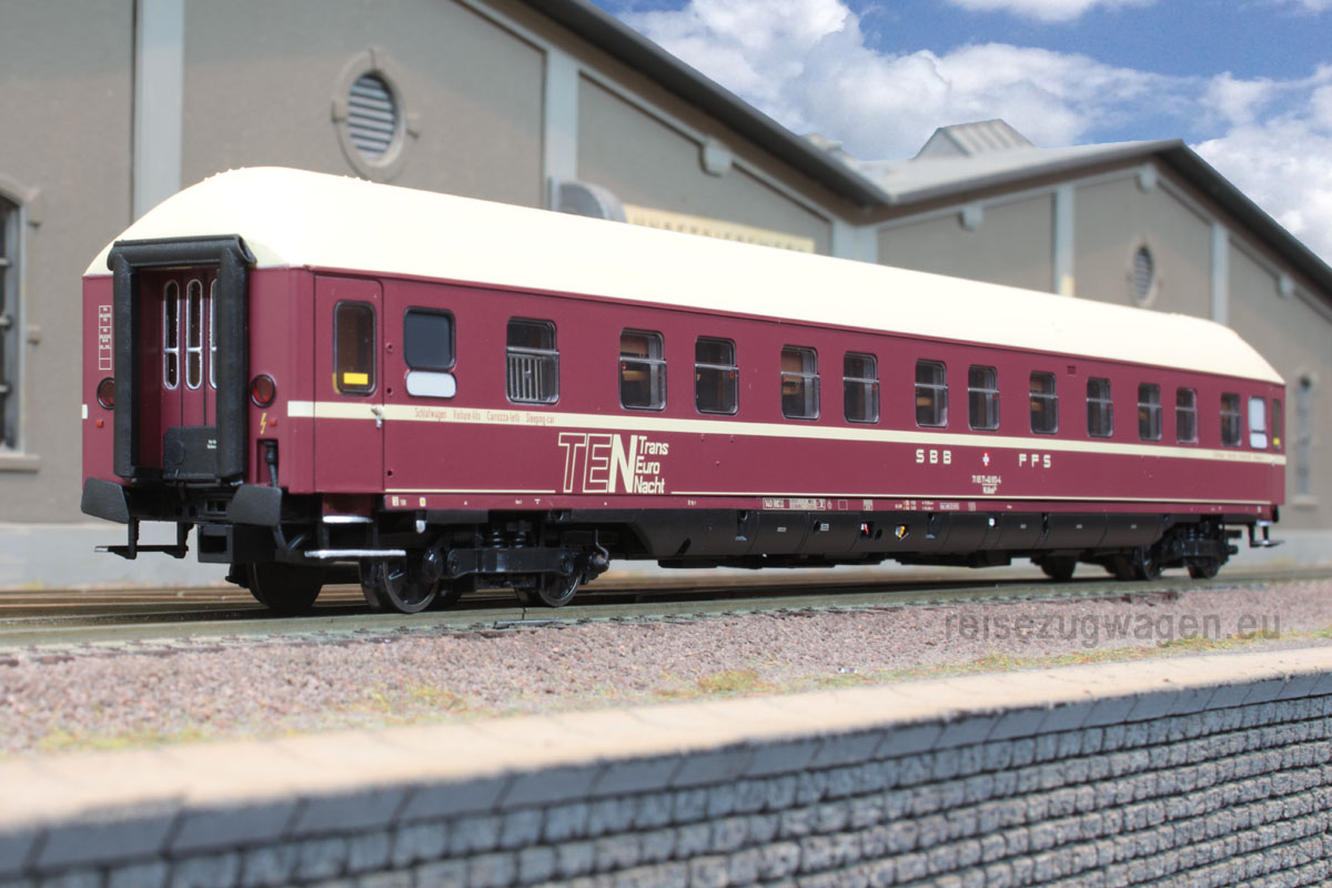 Schlafwagen des Typs WLABm 174 (ex DB) mit München- Kassel Drehgestellen der SBB, Ep IV-V