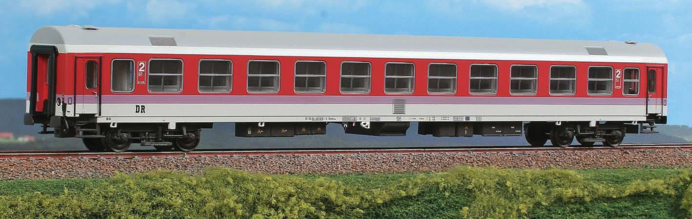 2. Klasse- Abteilwagen der DR- Bauart Bomz 236 in “orienroter” IC- Lackierung. DR- Logo, Ep V (2. Nummer)