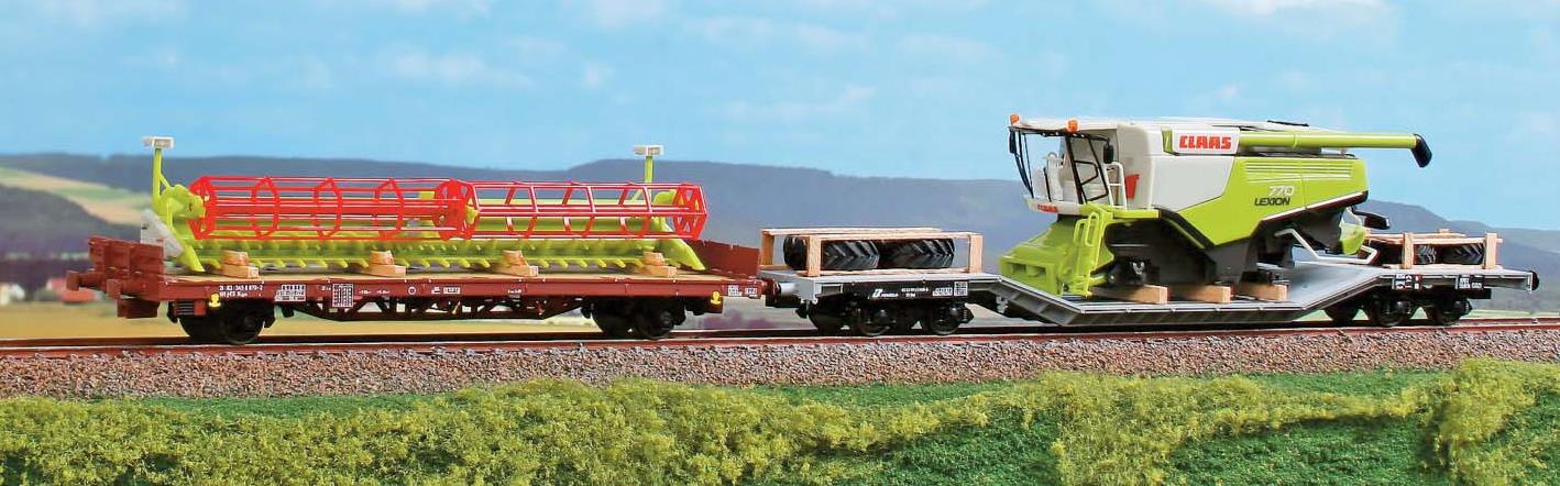 2-teiliges Güterwagen- Set bestehend aus je 1x Uai und Kgps, beladen mit Claas “LEXON 770″- Mähdrescher, Ep V