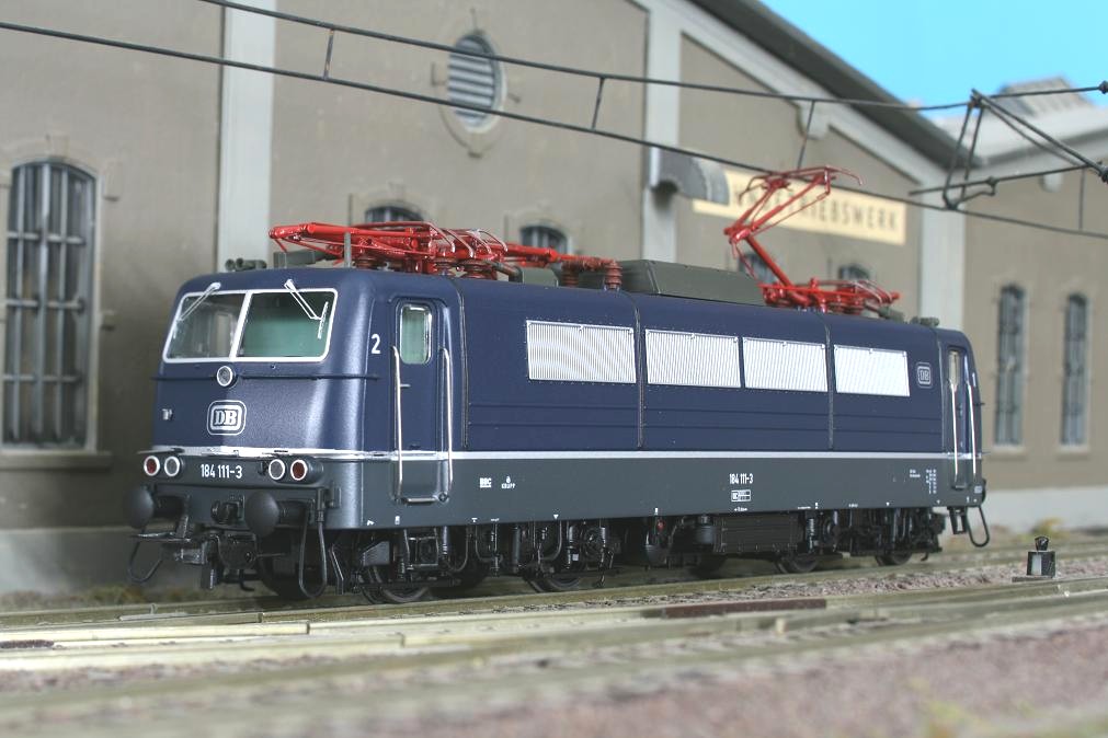 Modell einer Mehrsystem-Lokomotive der Baureihe 184 ( “Europalok” ). Die Maschine besitzt 4 Stromabnehmer, die Dachtritte sind durchbrochen. Die Lackierung und Beschriftung entspricht der Ep. IV. 21-pol. Schnittstelle, Sound.
