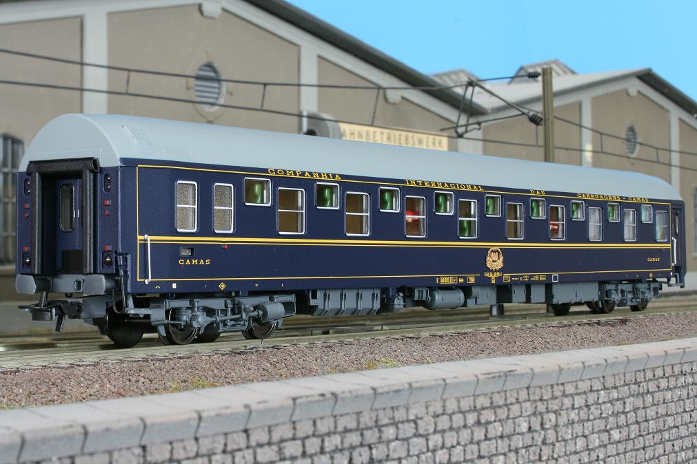 Schlafwagen Typ T2 ( WL36x-5422) der CIWL. Drehgestelle der Bauart MD 37. Blau mit grauem Dach.