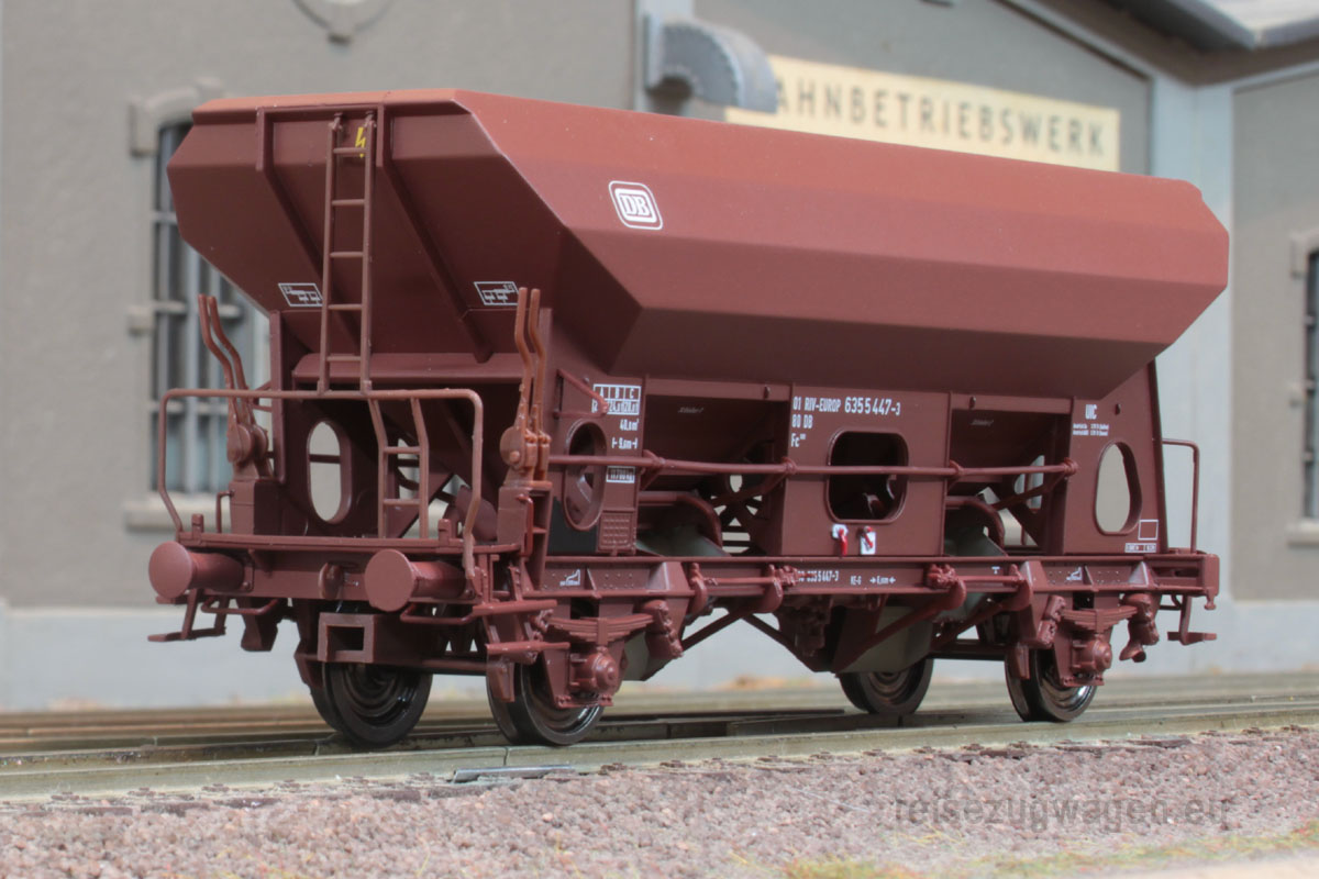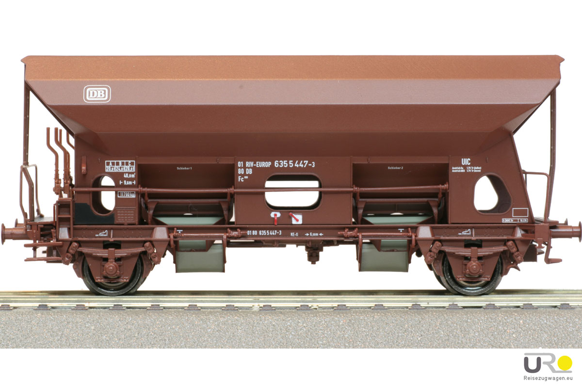 2- achsiger Schotterwagen Bauart Fcs 090 der DB, braunes Fahrwerk, Ep IV