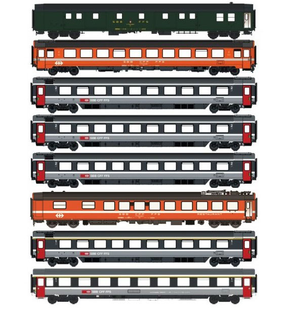 8-tlg. Wagenset des EC EC 114/115 “Arbalète” Paris-Bâle-Zurich (1994-1998) Ep V