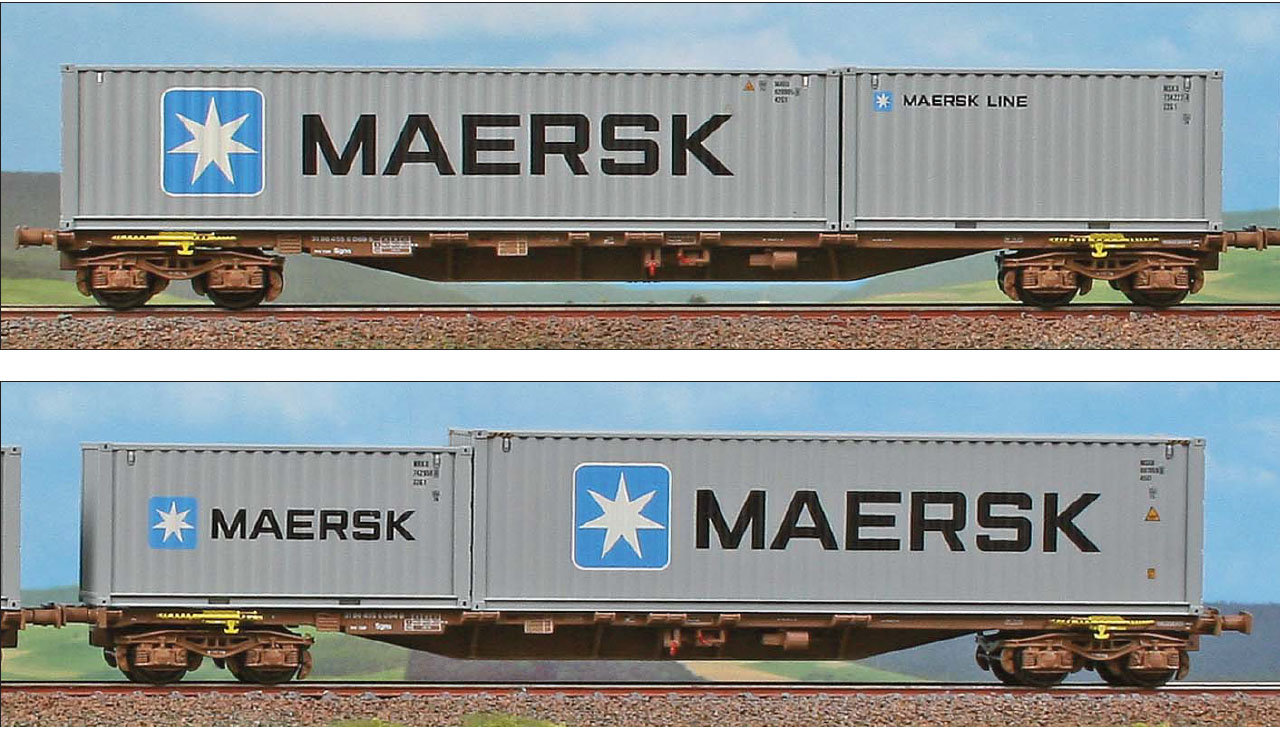 2-tlg. Wagenset Sgns beladen mit “MAERSK”- Containern, Ep Vb