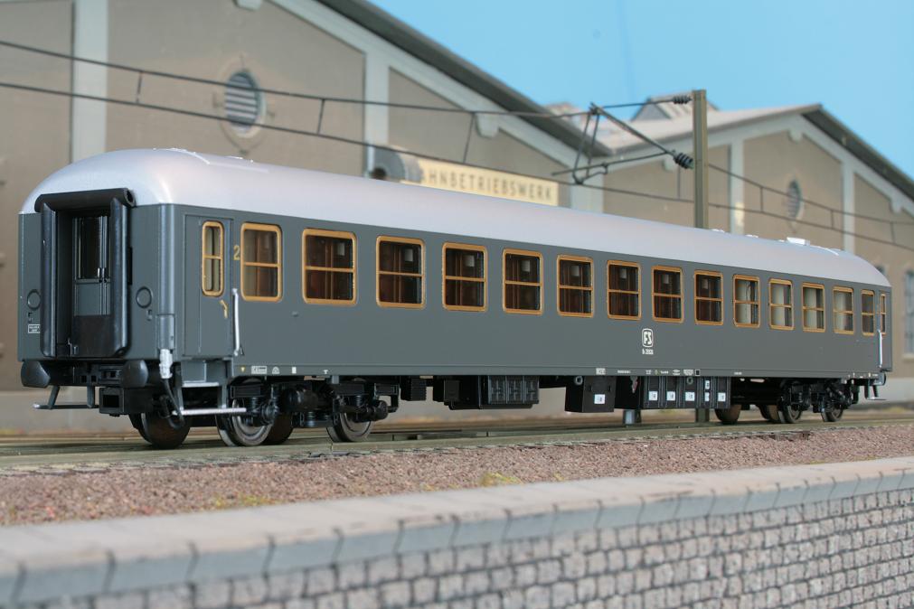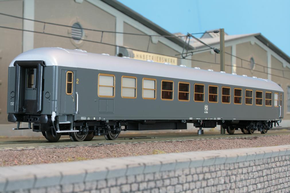 2. Klasse Schnellzugwagen mit Küche des Typ’s UIC X (1964, Zustand 1967) der FS. Graue Lackierung, Ep. IIIb.