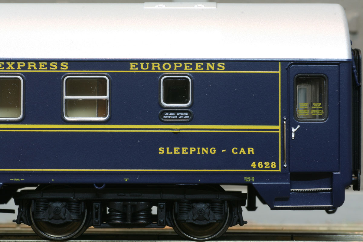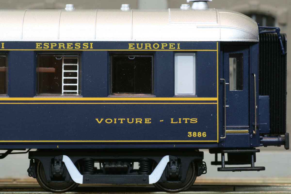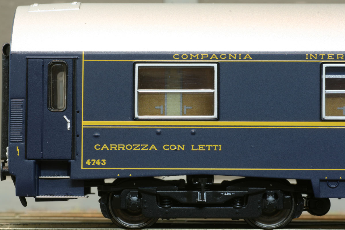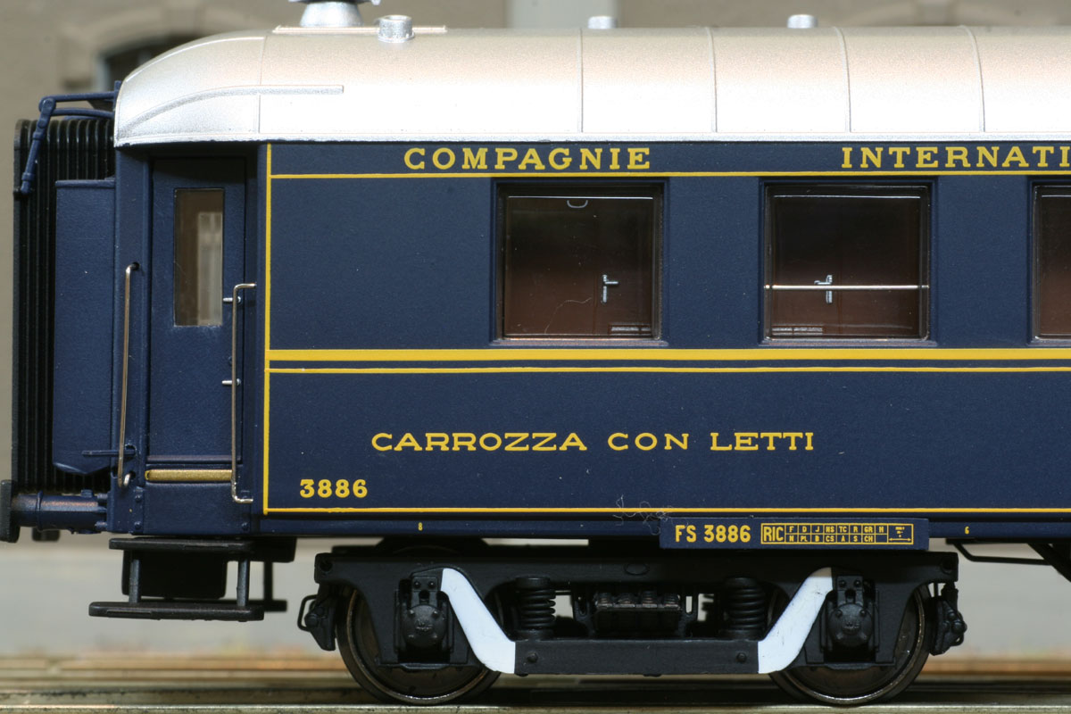 3-tlg. Wagenset “Tuttoletti” (Mailand-Rom) bestehend ais je einem Schlafwagen der Bauarten MU, U Hansa und Typ Y, Ep III. Beiliegende Zuglaufschilder